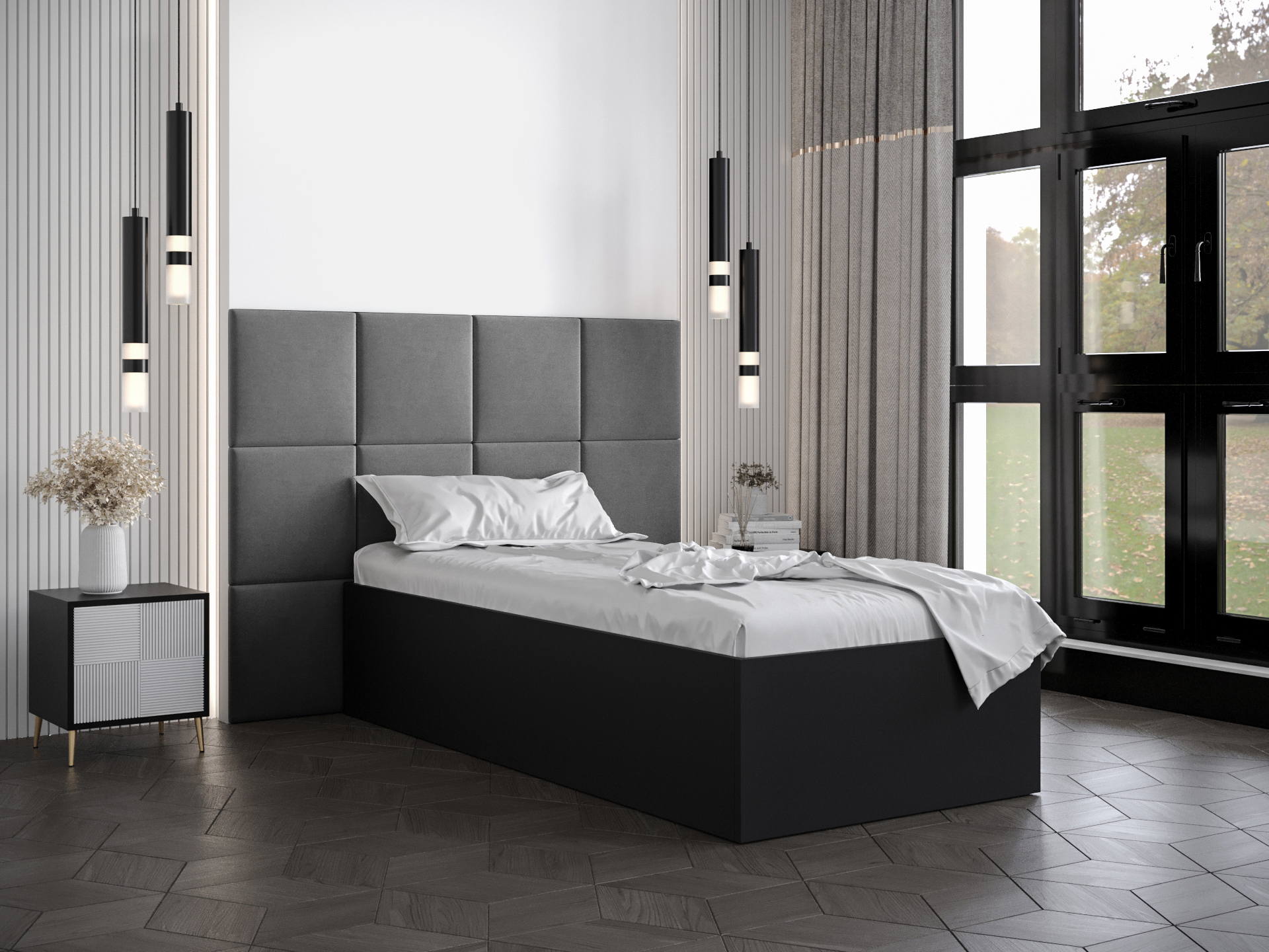 Egyszemélyes ágy kárpitozott fejtámlával 90 cm Brittany 4 (matt fekete + szürke) (ágyráccsal)