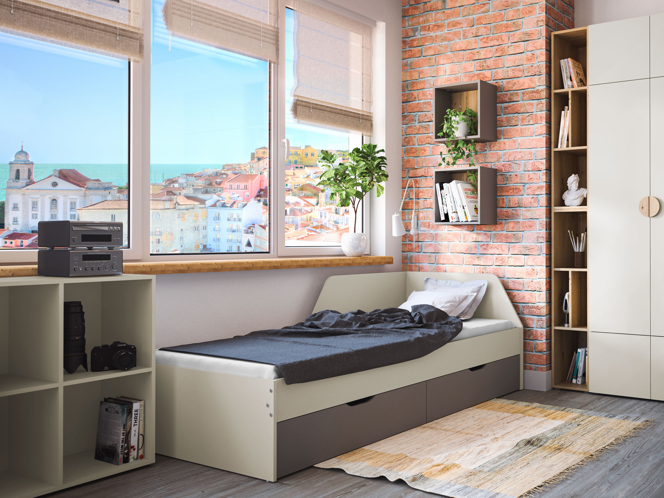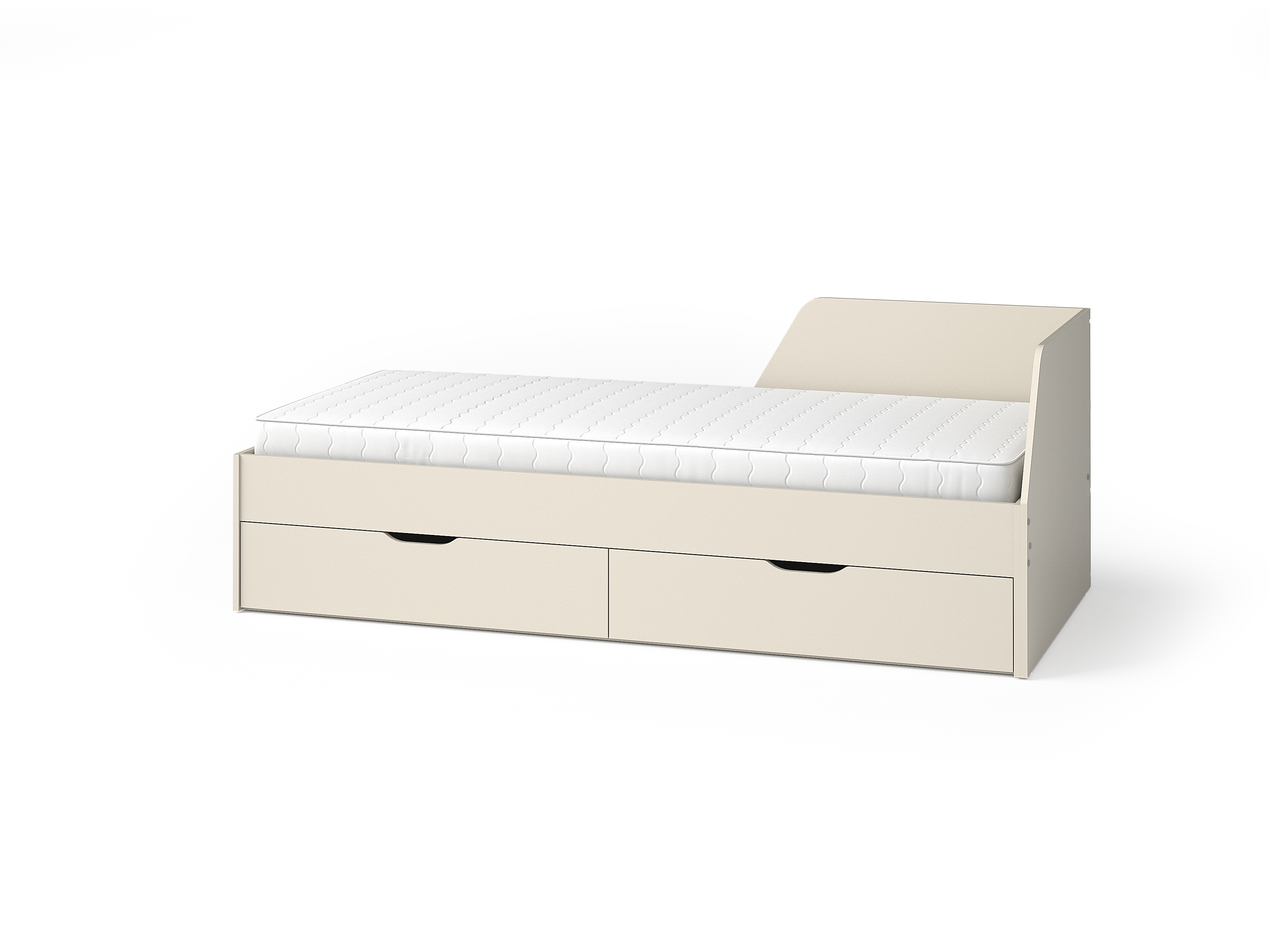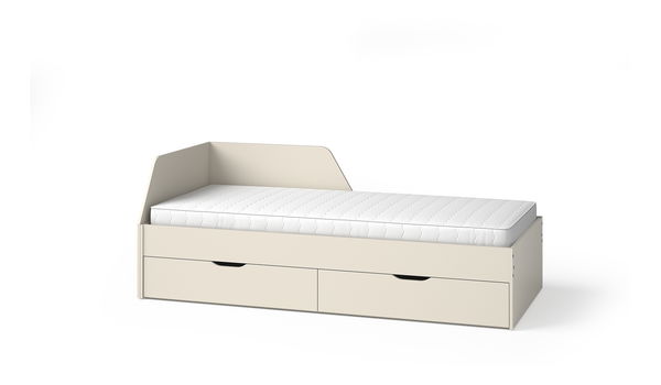 Az ágykeret fa lamellákból és oldallécek nyers MDF lapból 22 mm.