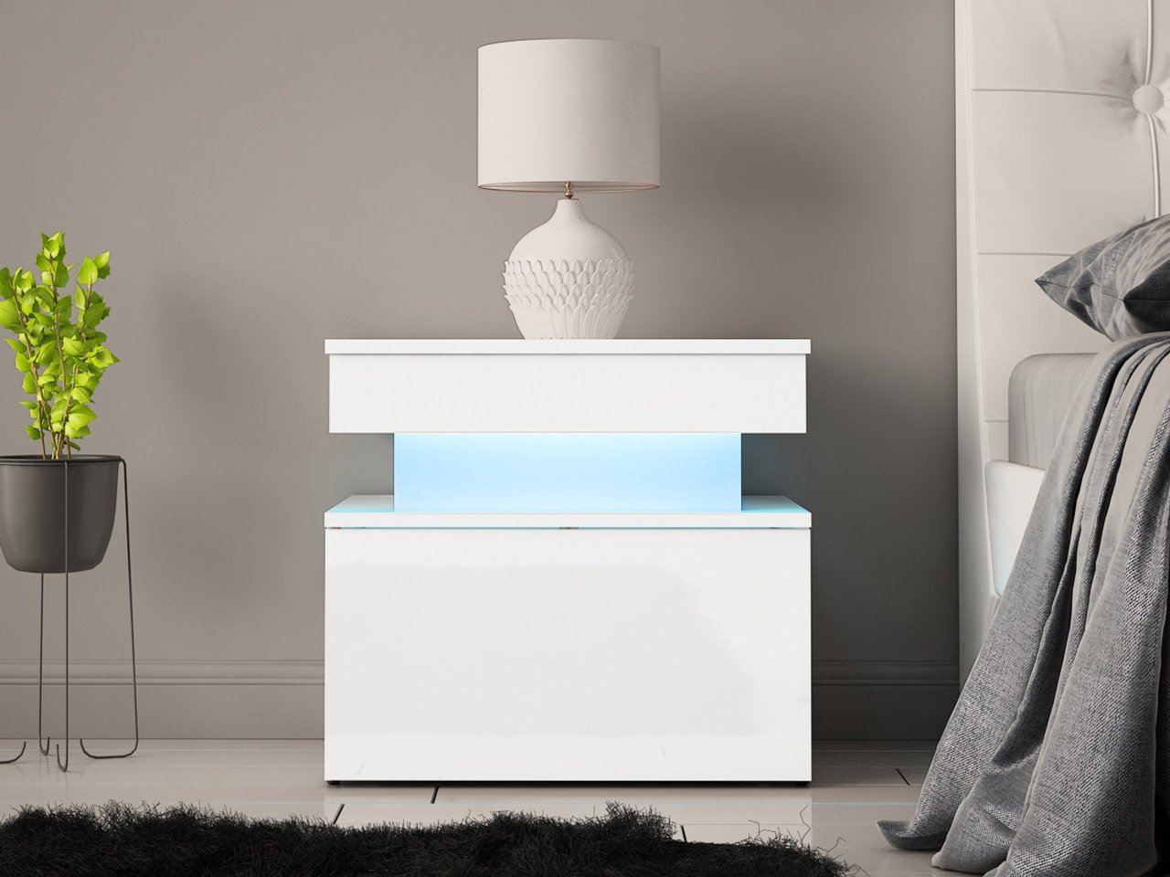 Éjjeliszekrény Calado (fehér + fényes fém)