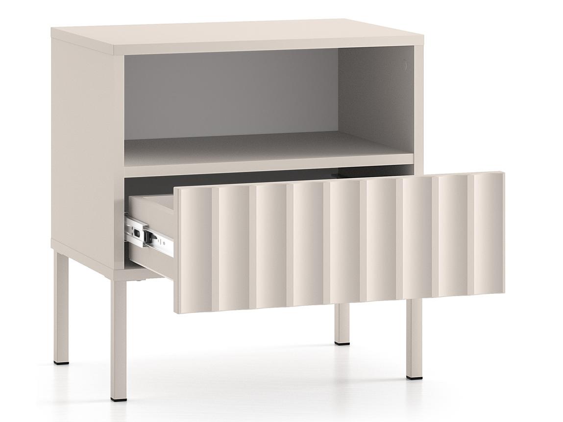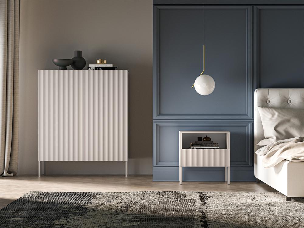 Egyedi, modern és egyben funkcionális bútorokat keres belső terébe? A kollekció minden elvárásnak megfelel. Az egyedi kialakítású éjjeliszekrény tökéletesen illeszkedik a modern és minimalista belső terekbe. A világos bézs szín gyengéd varázst kölcsönöz neki, amely tökéletesen illeszkedik a legtöbb elrendezéshez. Az egész kollekciót kifinomult részlet jellemzi a barázdált elülső részek formájában, amelyek minden helyiségnek egyedi megjelenést kölcsönöznek. A funkcionalitást szem előtt tartva tervezték, három tágas fiókkal és két polccal rendelkezik, ahol könnyedén elhelyezhet különféle tárgyakat igényei szerint. Ha a korpuszt stabil fa lábakra helyezzük a bútor színében, az egész könnyűnek és nagyon stílusosnak tűnik. A kollekció nem csak praktikus tárolási megoldás, hanem olyan dizájnelem is, amely minden helyiség egyedi stílusát hangsúlyozza. Ne várjon, és vezessen egyedi karaktert belső terébe még ma. Termék részletek: Koprusz laminált lapból Cashmere U12168VV - PFL 16 mm, előlapok MDF lapból NL7393 CASHMERE SERICA 18 mm, fióknyitás nyomásra, belül fém lábak! Korpusz színe, nyitható fióknyílás, előlapok 7 mm-rel az asztallap fölé nyúlnak, melamin élek mechanikai sérülésekkel szemben, középső/támasztó lábak magasságállító funkcióval, hátfal fehér HDF-ből, szín: világos bézs.