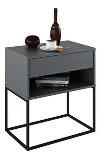 A fém asztalok vagy a fából készült fekete dizájn jellegzetes kiegészítőkkel illeszkednek a belső terekbe. Fém leginkább a fogantyúkon, talpakon vagy egyéb design elemeken található. A fém keretbe fa vagy üveglap helyezhető. Egyre népszerűbbek a fával kombinált kárpitozott éjjeliszekrények. Bár karbantartásuk igényesebb, a nem hagyományos kialakításukkal ez a hátrány is leküzdhető.