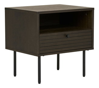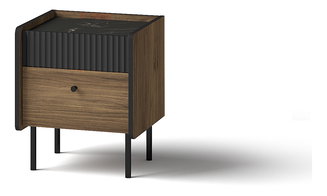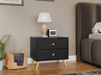 A fém asztalok vagy a fából készült fekete dizájn jellegzetes kiegészítőkkel illeszkednek a belső terekbe. Fém leginkább a fogantyúkon, talpakon vagy egyéb design elemeken található. A fém keretbe fa vagy üveglap helyezhető. Egyre népszerűbbek a fával kombinált kárpitozott éjjeliszekrények. Bár karbantartásuk igényesebb, a nem hagyományos kialakításukkal ez a hátrány is leküzdhető.