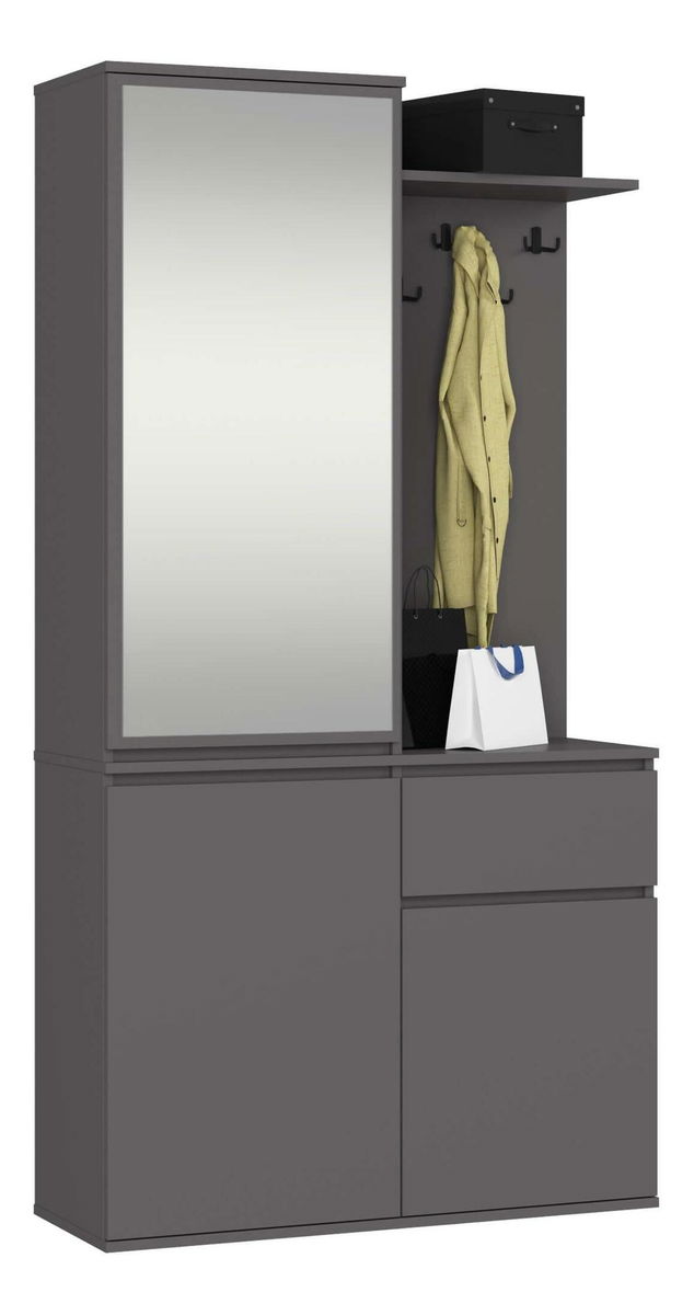 Előszoba bútor Enteruno (szürke grafit) (tükörrel)