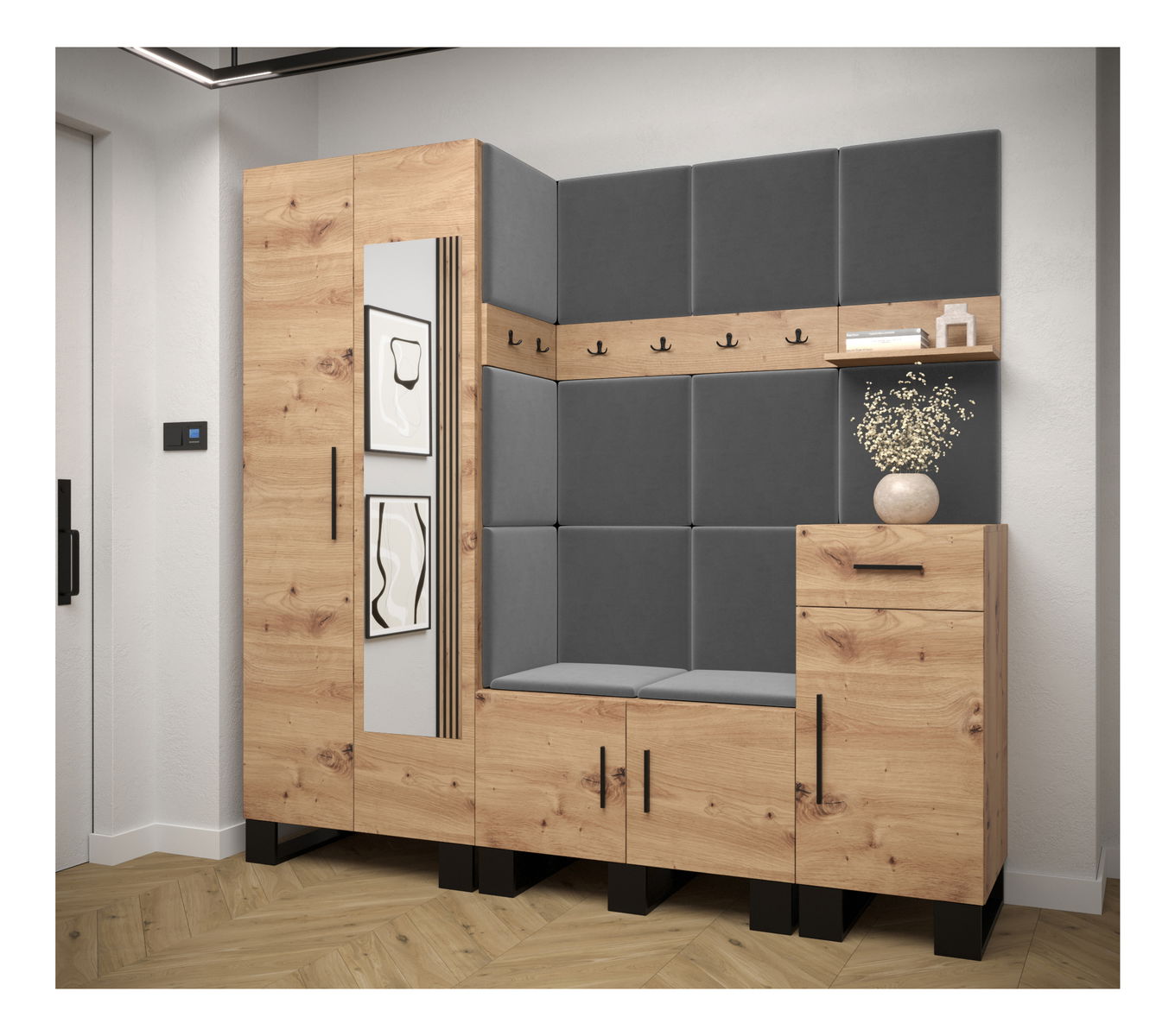 Előszobabútor Amanda 13 (artisan tölgy + sötétszürke)