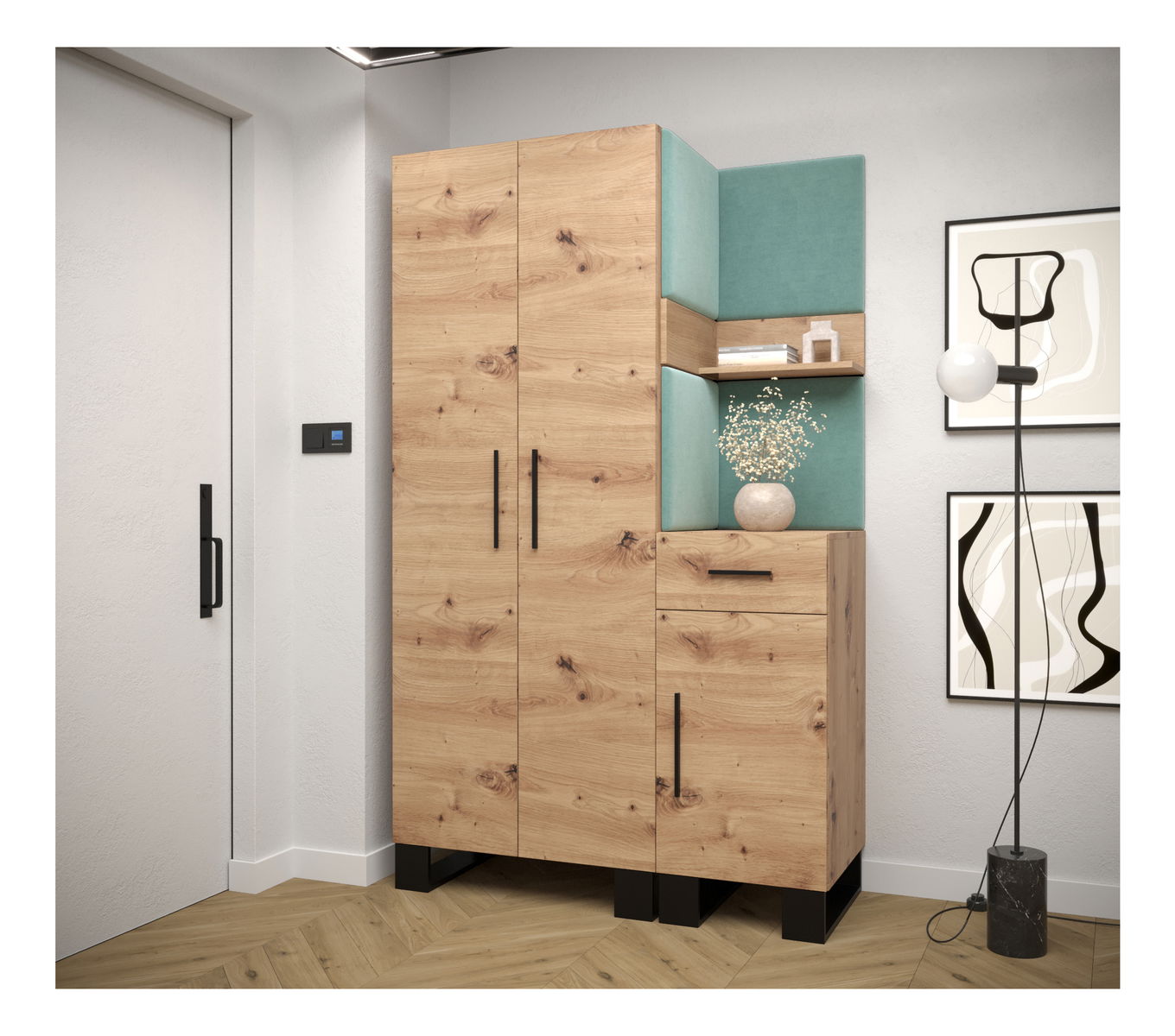 Előszobabútor Amanda 6 (artisan tölgy + zöld)