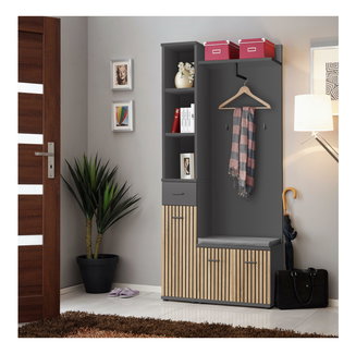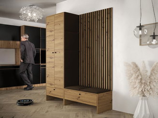 - Anyag és stílus. Akár provence-i, rusztikus vagy modern stílust preferál, gondoljon az előszobabútor tartósságára és anyagára. A bútor falai nagyon gyakran laminált vagy forgácslapból készülnek. Megfizethetőek, és sokféle dekor közül választhat, pl. sonoma tölgy vagy a népszerű fehér változat. Így illesztheti őket gyönyörűen például a padlóhoz vagy a stílusos és praktikus tolóajtókhoz. Ezenkívül könnyen moshatók és viszonylag tartósak. A forgácslapot finom szerkezet és széles színválaszték jellemzi.