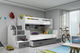 Emeletes ágy 120 x 200 cm Moxxo 3 (fehér + grafit) (ágyrácsokkal és tárolóhellyel)