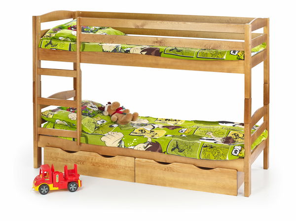Emeletes ágy 80 cm Sana éger (tömörfa ágyráccsal és matraccal) (fenyő)