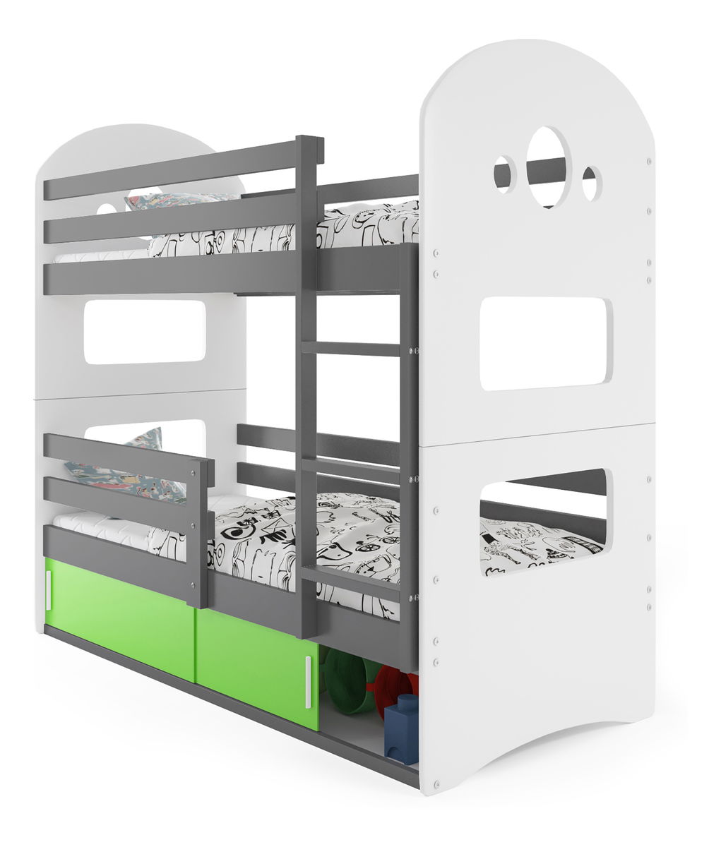 Emeletes ágy 80 x 160 cm Domur (grafit + zöld) (ágyrácsokkal és tárolóhellyel)