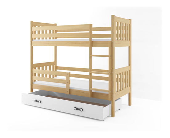 Emeletes ágy 80 x 190 cm Carius B (fenyő + fehér) (ágyrácsokkal és tárolóhellyel)