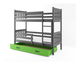 Emeletes ágy 80 x 190 cm Carius B (grafit + zöld) (ágyrácsokkal és tárolóhellyel)
