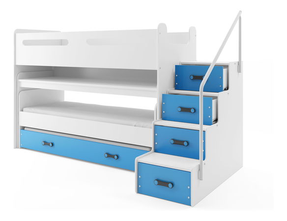 Emeletes ágy 80 x 200 cm Moxxo 1 (fehér + kék) (ágyrácsokkal és tárolóhellyel)