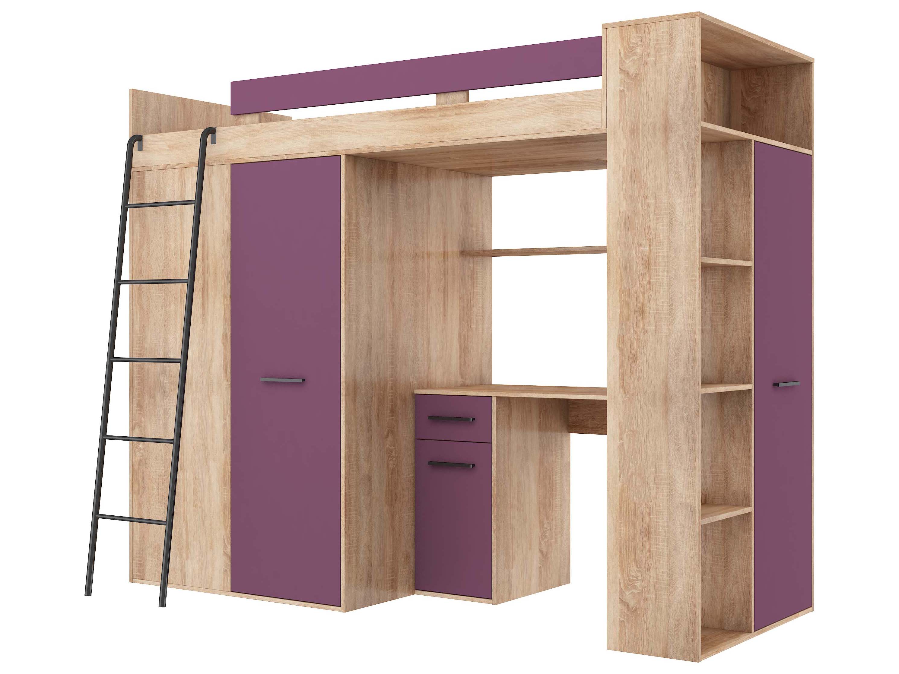 Emeletes ágy 90 cm Vivian (B) (ágyráccsal) (szonoma tölgy + lila)