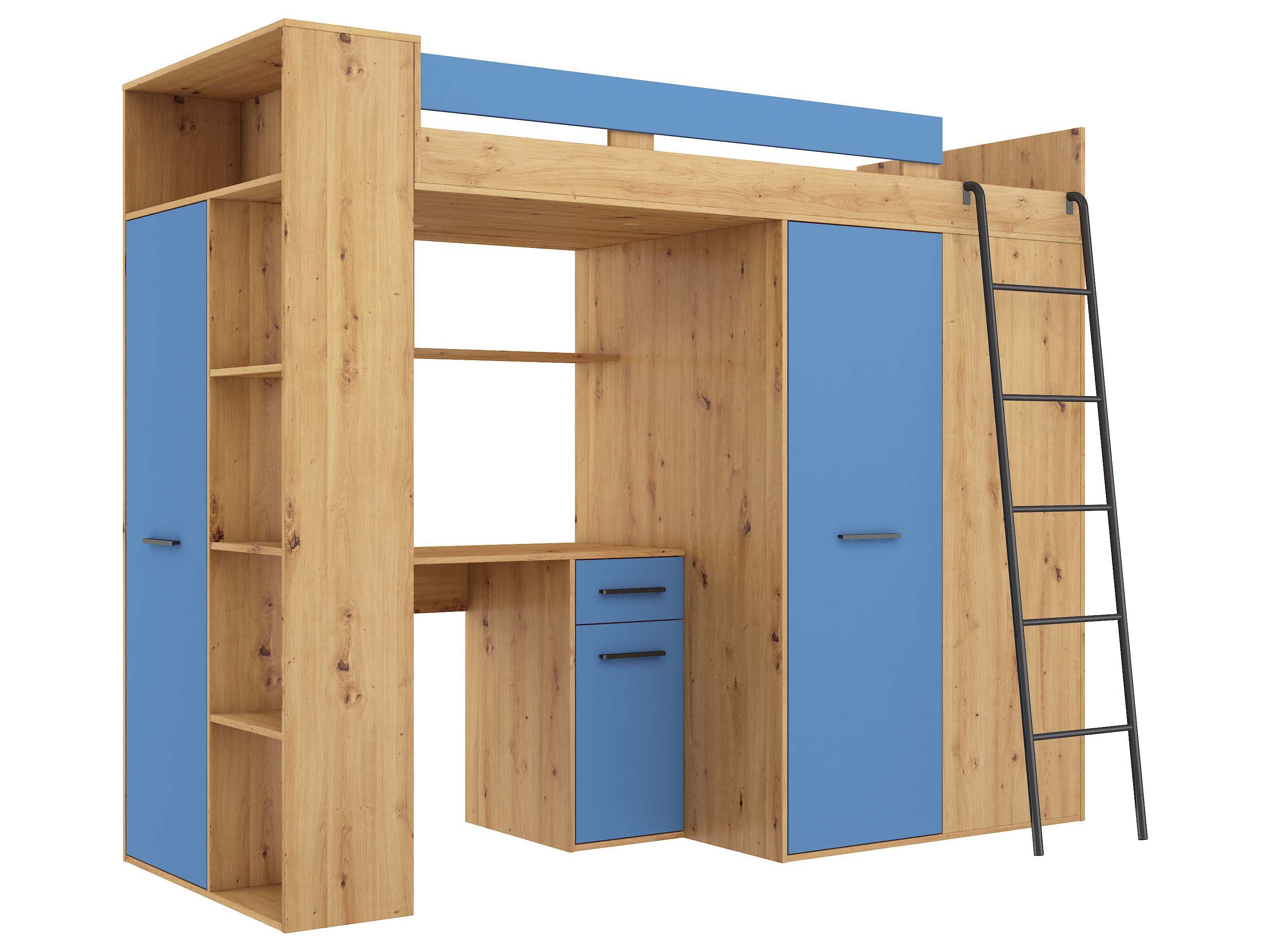 Emeletes ágy 90 cm Vivian (J) (ágyráccsal) (artisan tölgy + égszínkék)