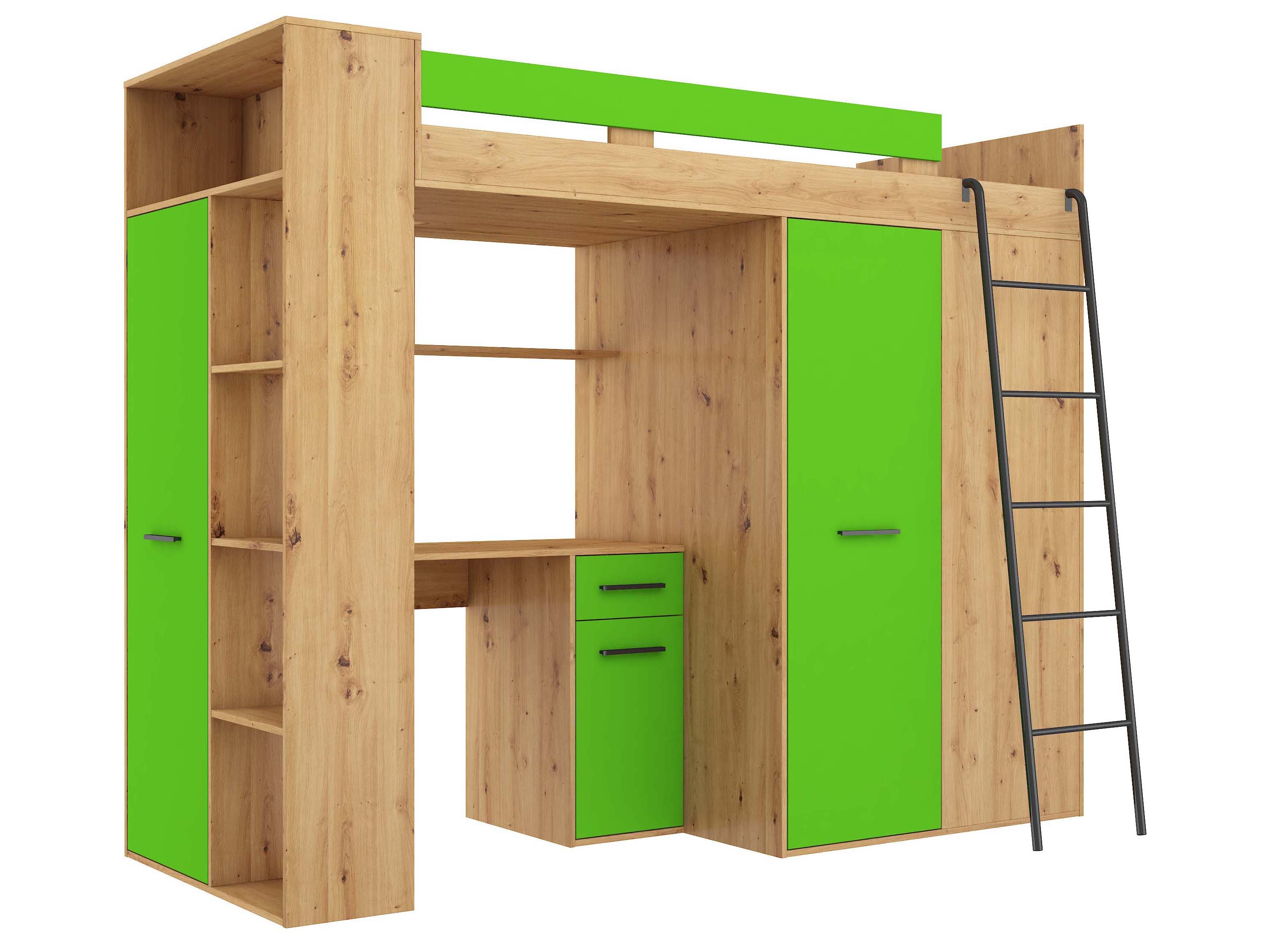 Emeletes ágy 90 cm Vivian (J) (ágyráccsal) (artisan tölgy + zöld)