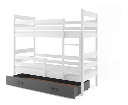 Emeletes ágy 90 x 200 cm Eril B (fehér + grafit) (ágyrácsokkal és tárolóhellyel)