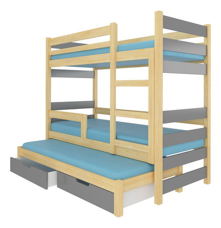 Emeletes gyerekágy 180x75 cm Karin (ágyráccsal és matraccal) (fenyő + szürke)