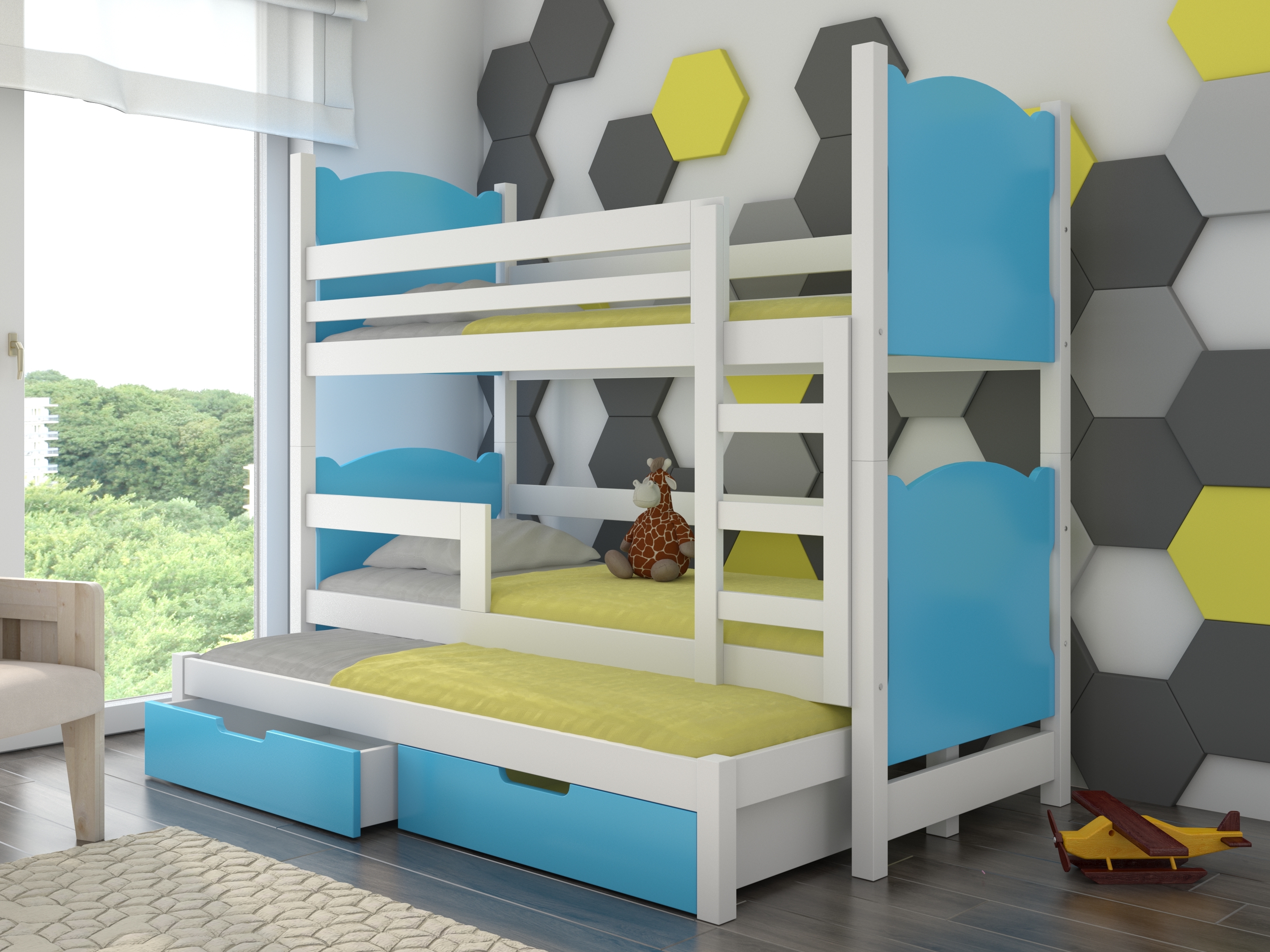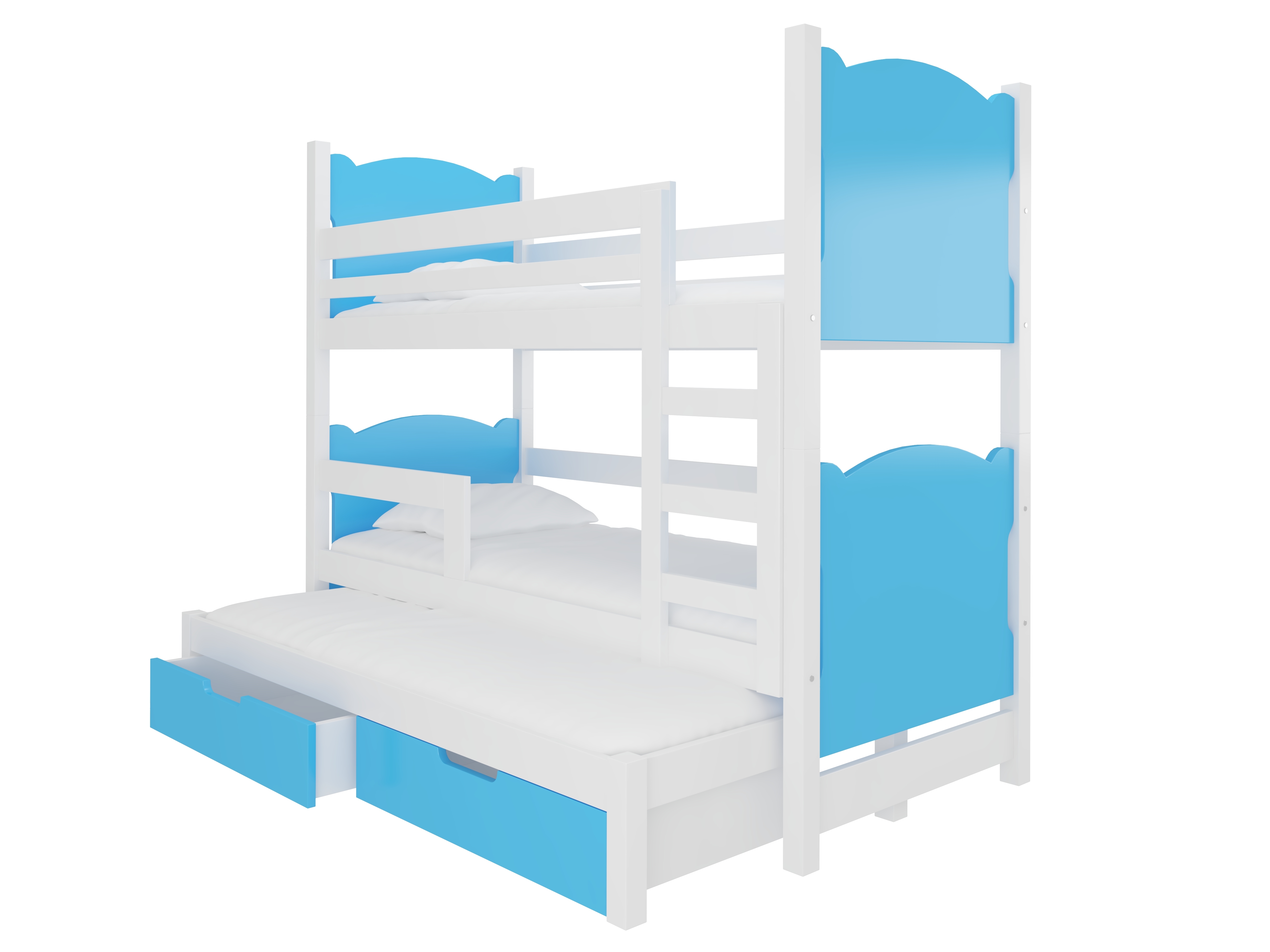 Emeletes gyerekágy 180x75 cm Lukrécia (ágyráccsal és matraccal) (fehér + kék)