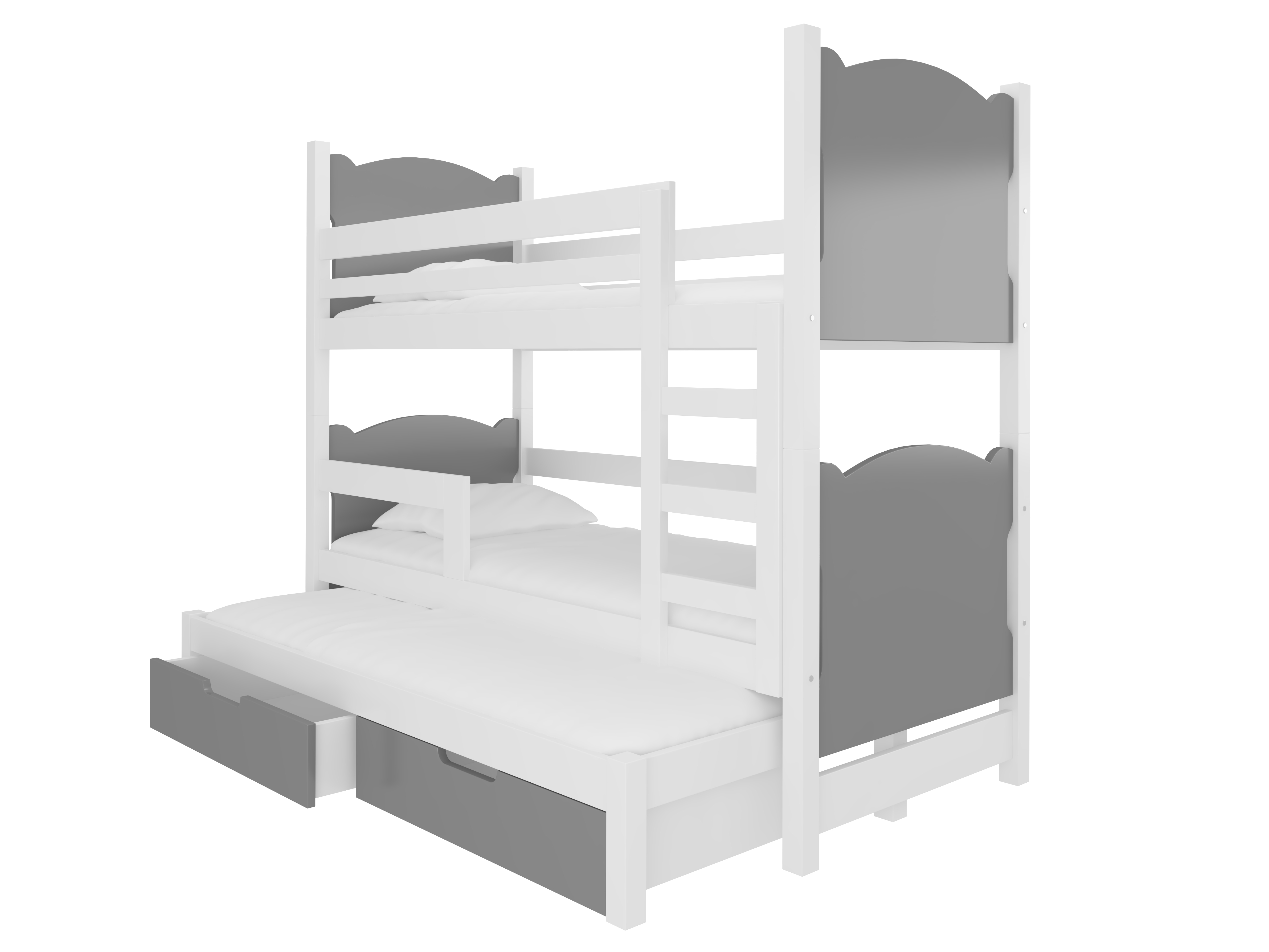 Emeletes gyerekágy 180x75 cm Lukrécia (ágyráccsal és matraccal) (fehér + szürke)