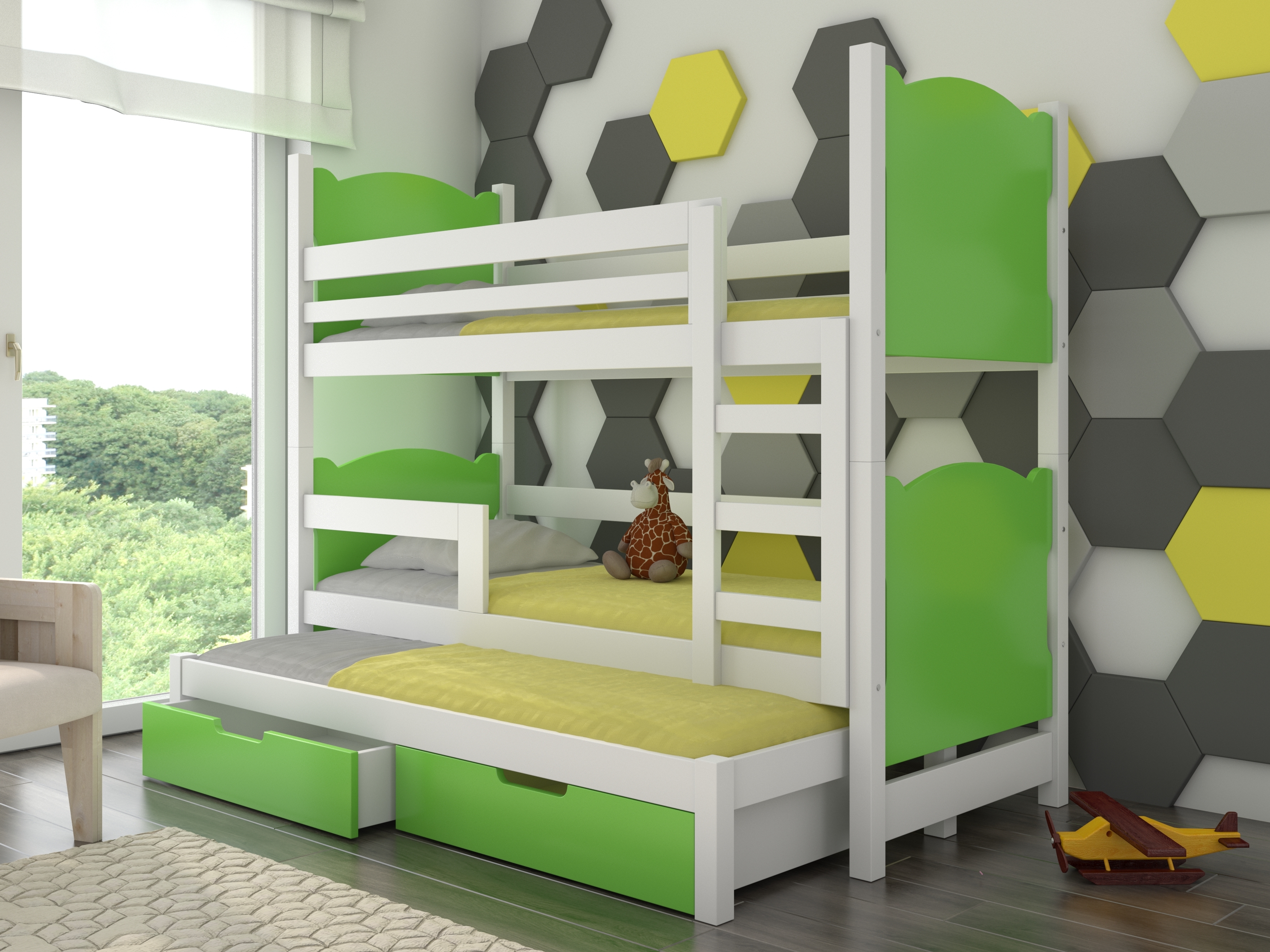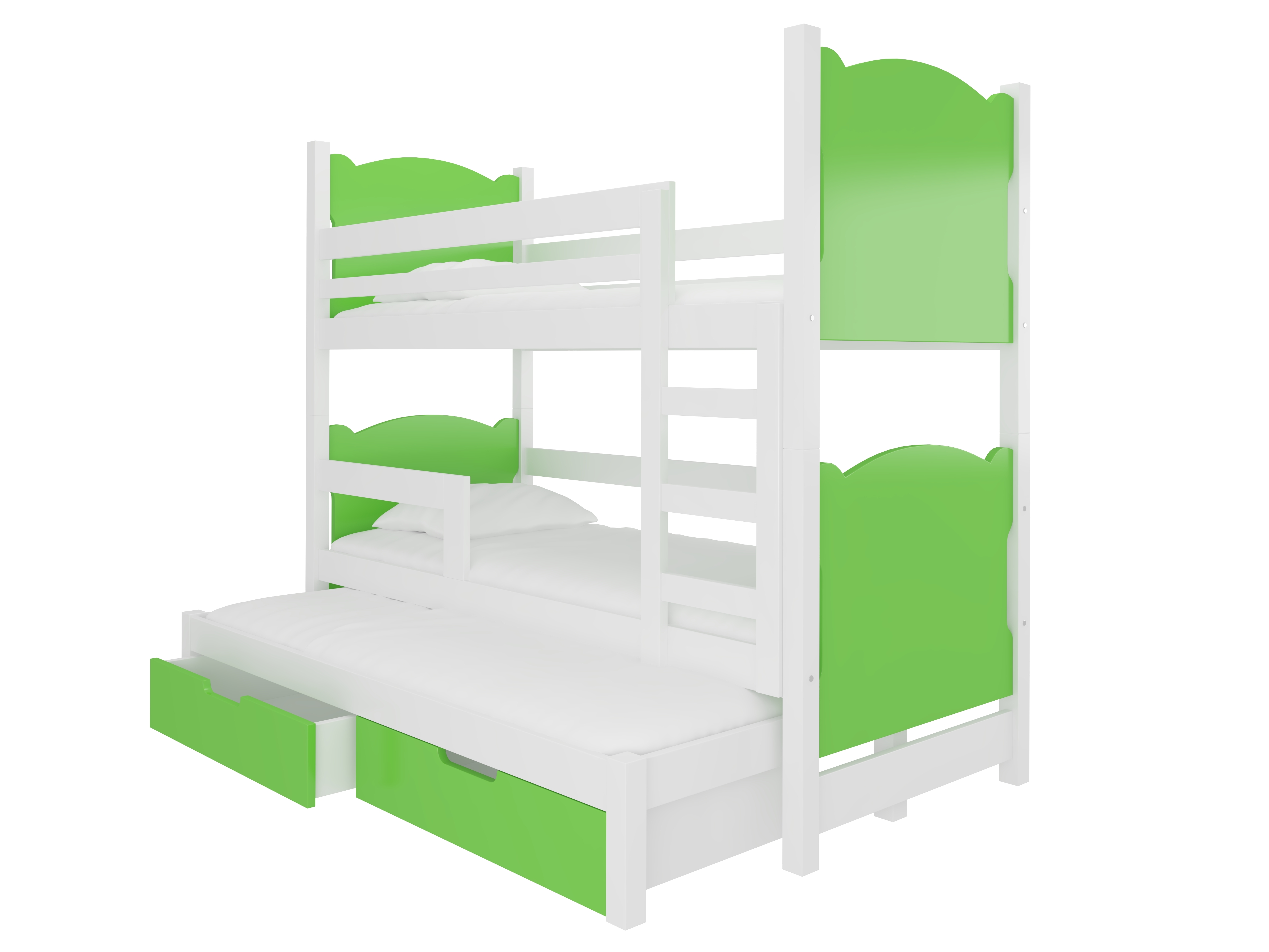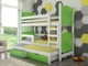 Emeletes gyerekágy 180x75 cm Lukrécia (ágyráccsal és matraccal) (fehér + zöld)