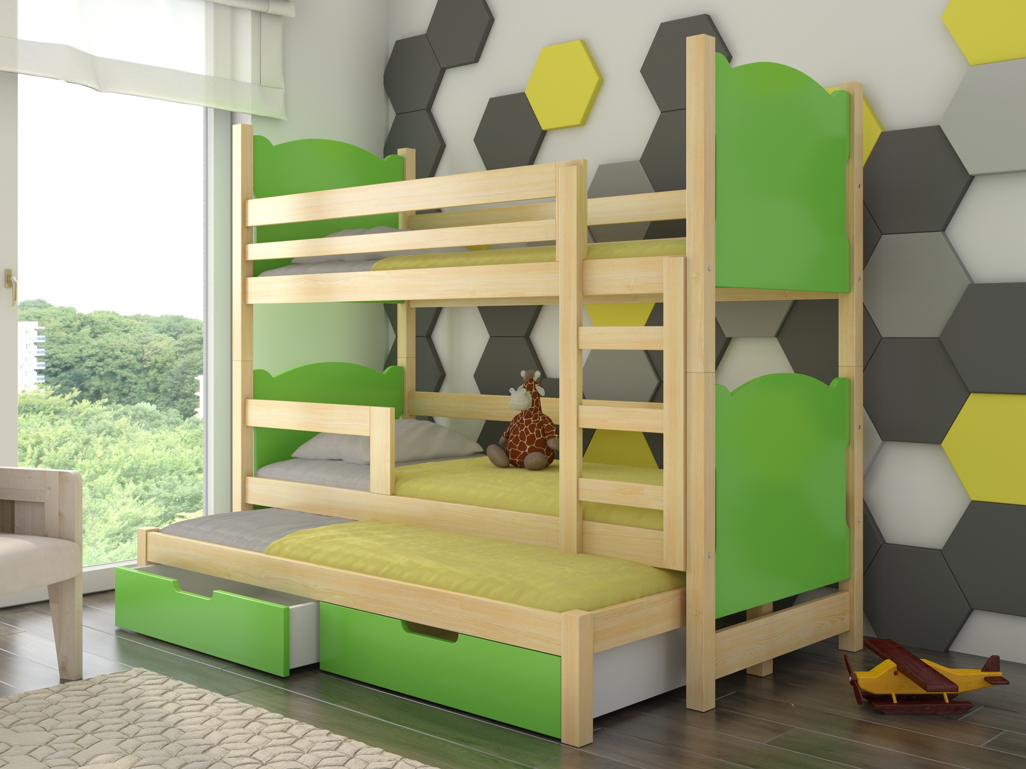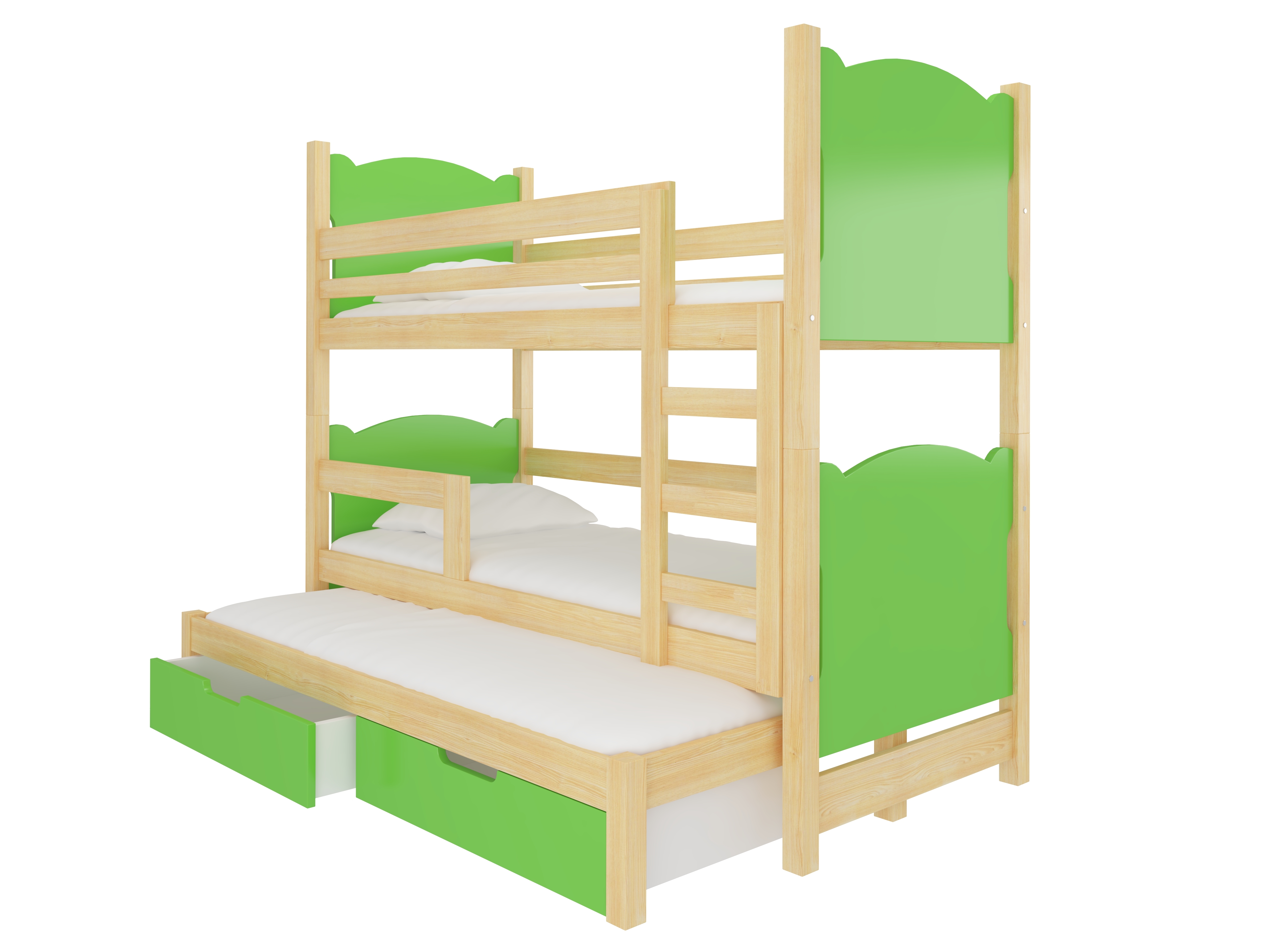 Emeletes gyerekágy 180x75 cm Lukrécia (ágyráccsal és matraccal) (fenyő + zöld)