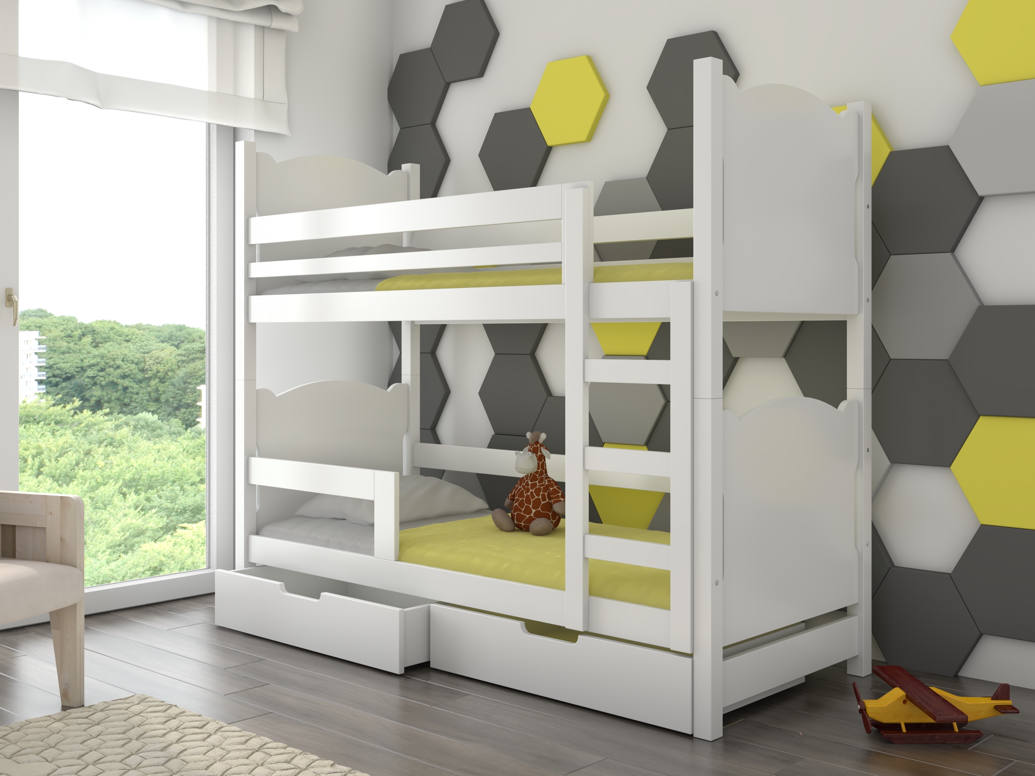 Emeletes gyerekágy 180x75 cm Marryann (ágyráccsal és matraccal) (fehér)