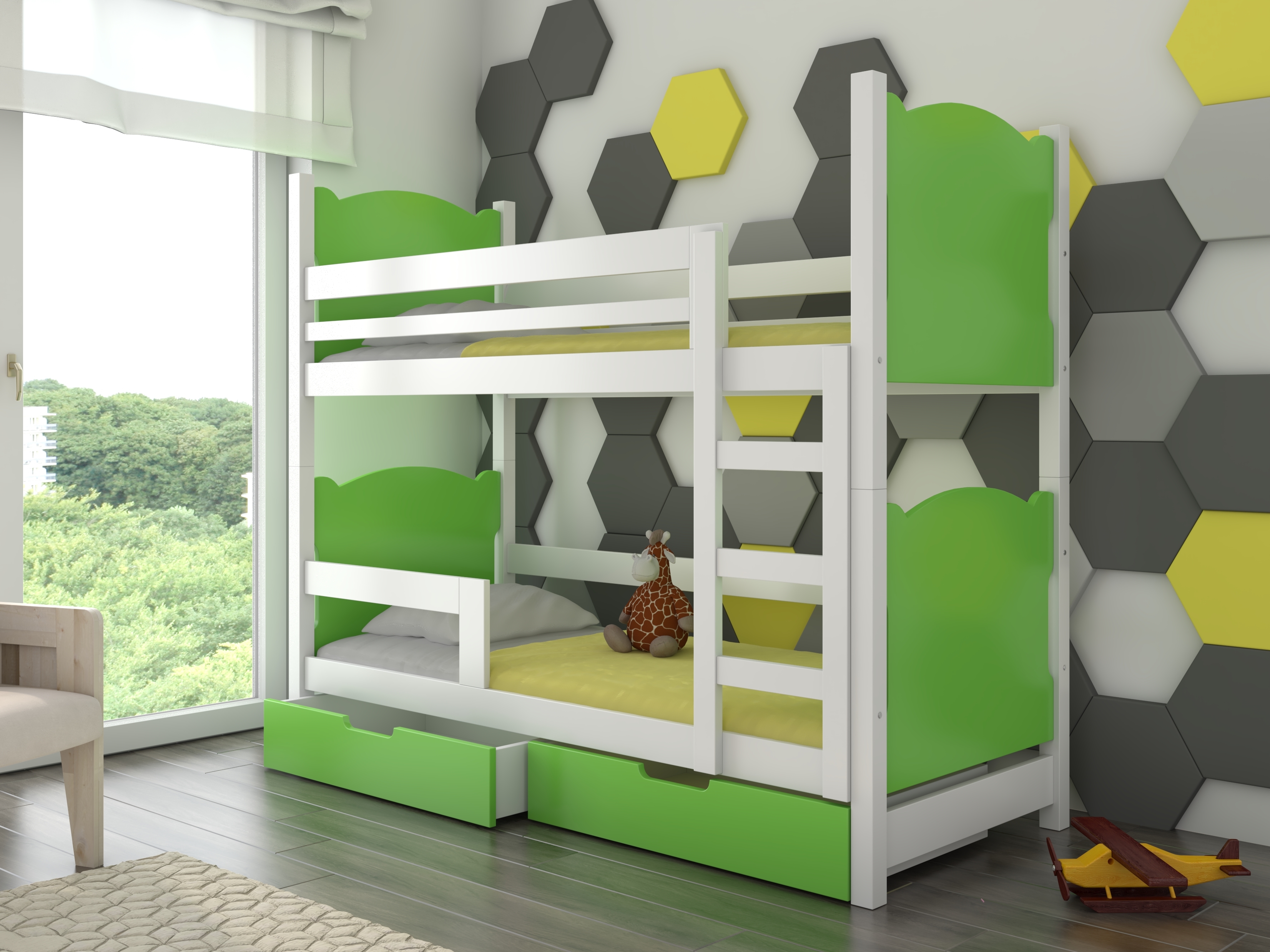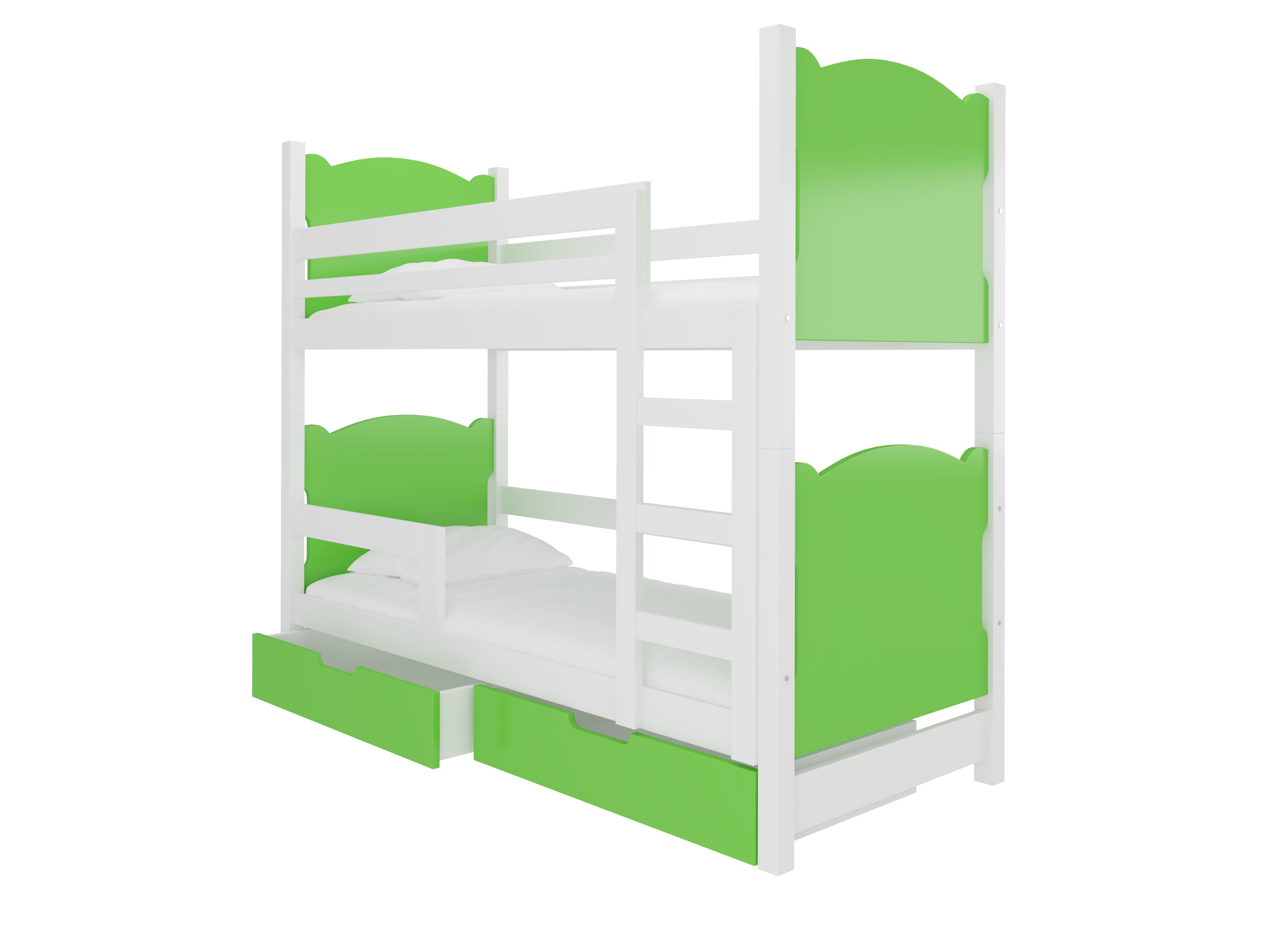 Emeletes gyerekágy 180x75 cm Marryann (ágyráccsal és matraccal) (fehér + zöld)