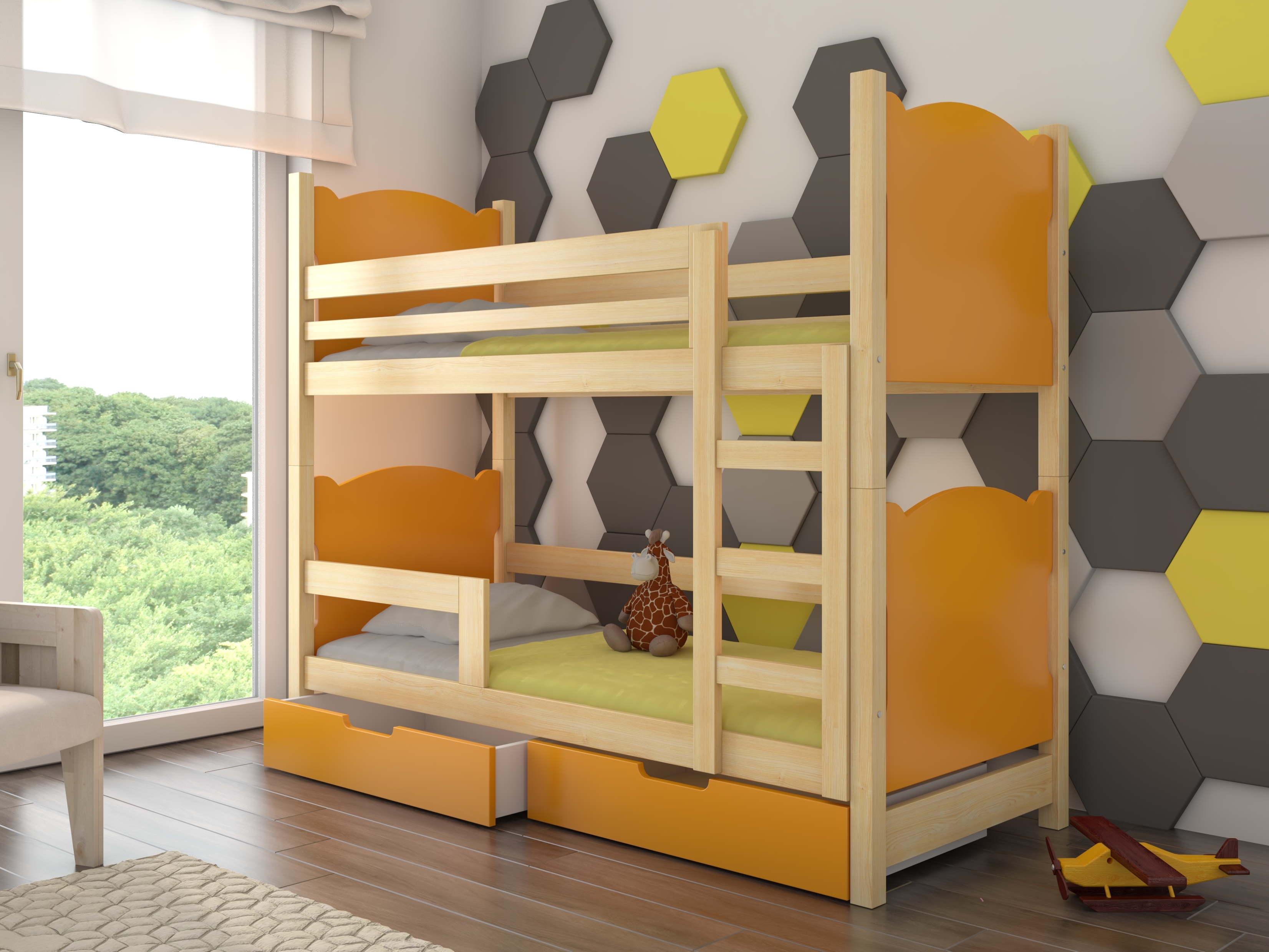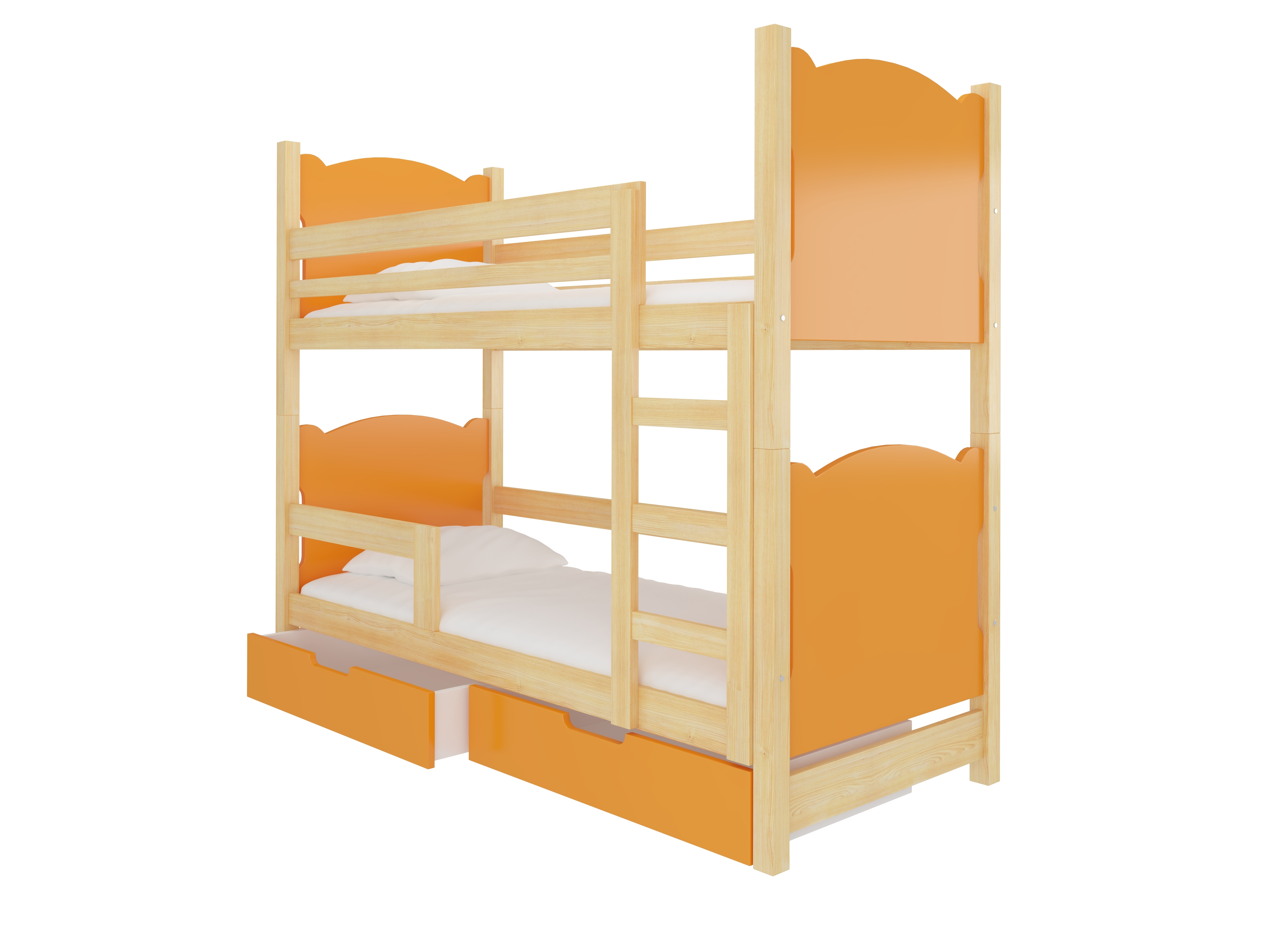Emeletes gyerekágy 180x75 cm Marryann (ágyráccsal és matraccal) (fenyő + narancssárga)