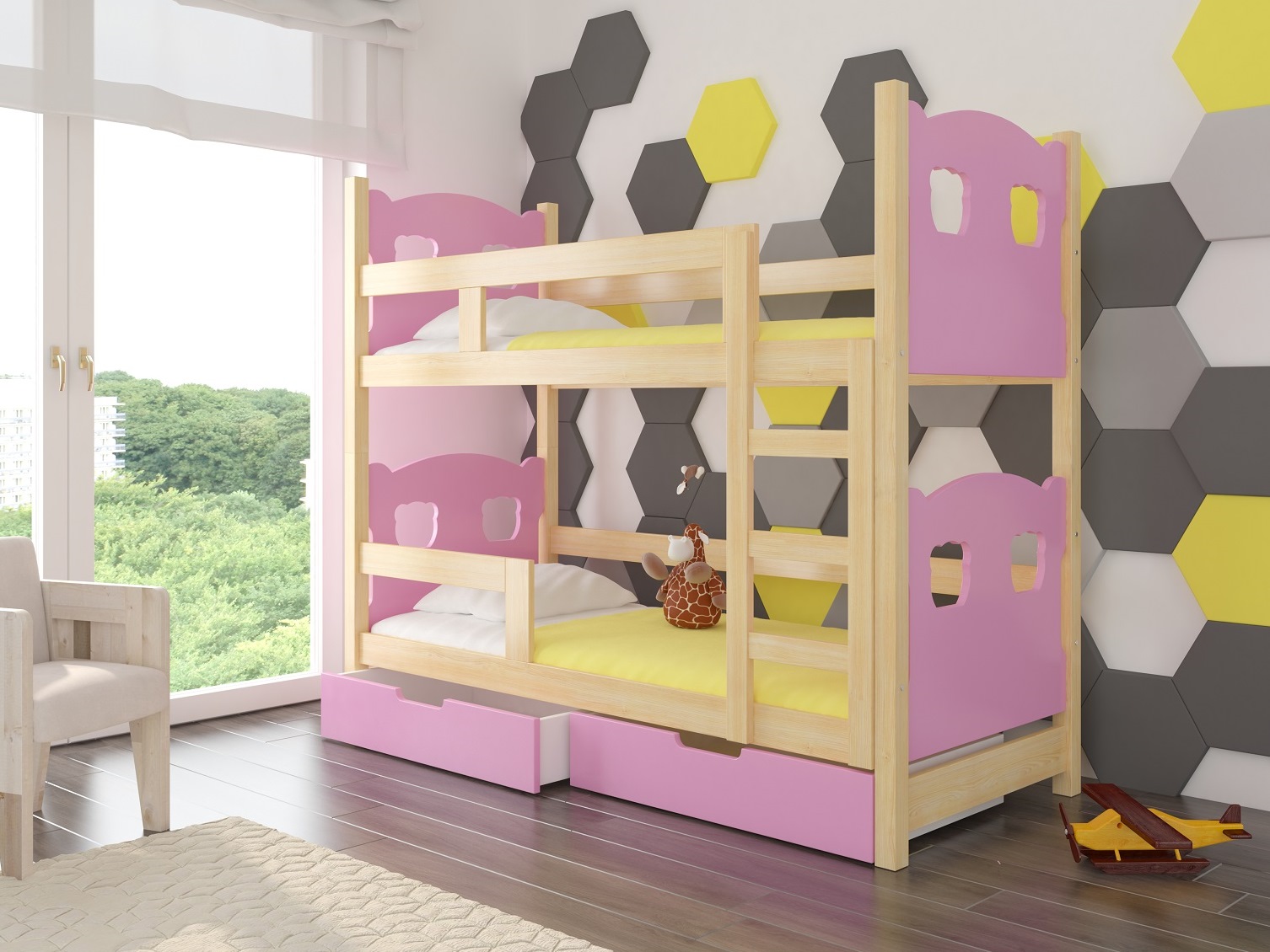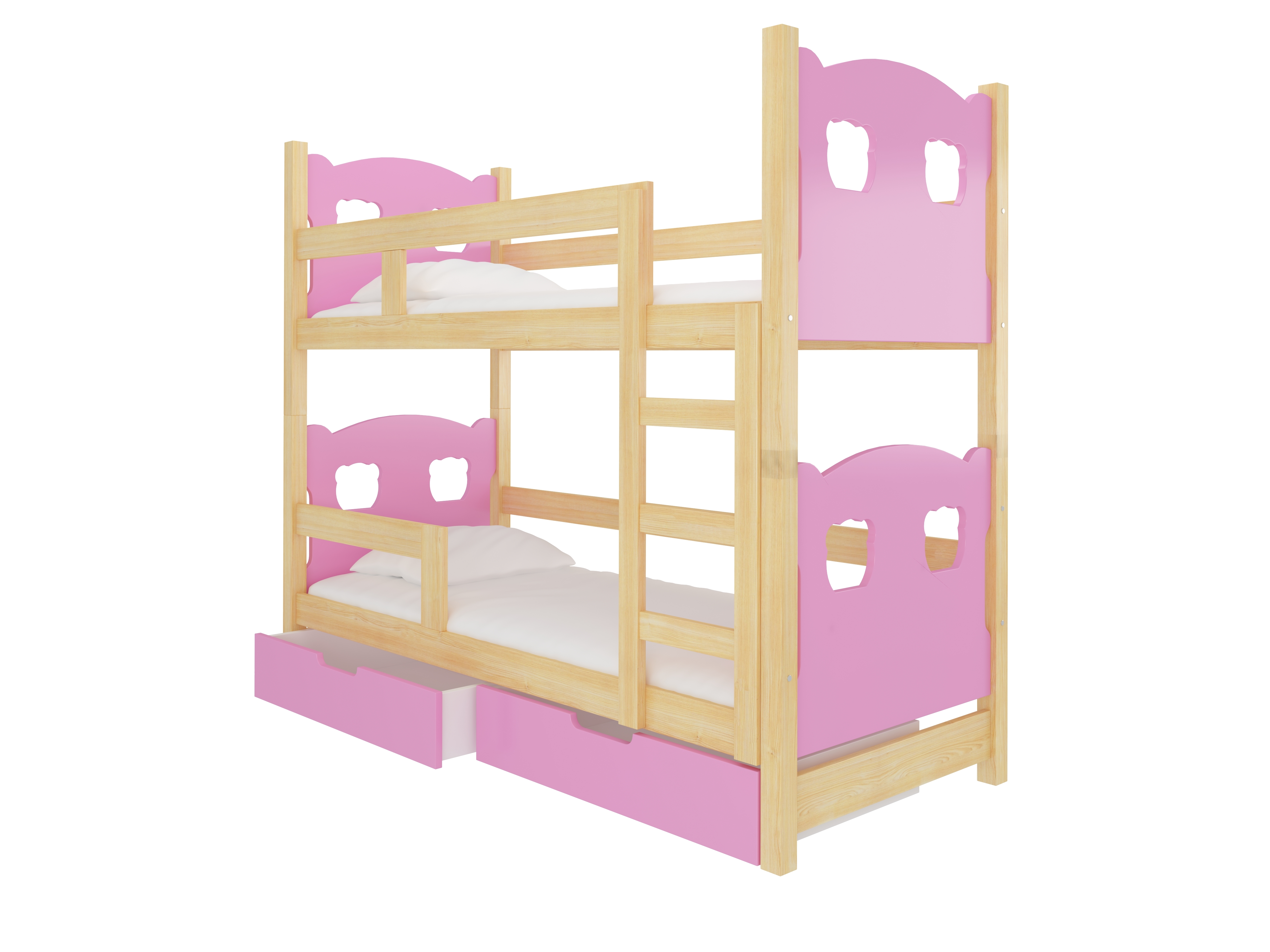 Emeletes gyerekágy 180x75 cm Marryann (ágyráccsal és matraccal) (fenyő + rózsaszín)
