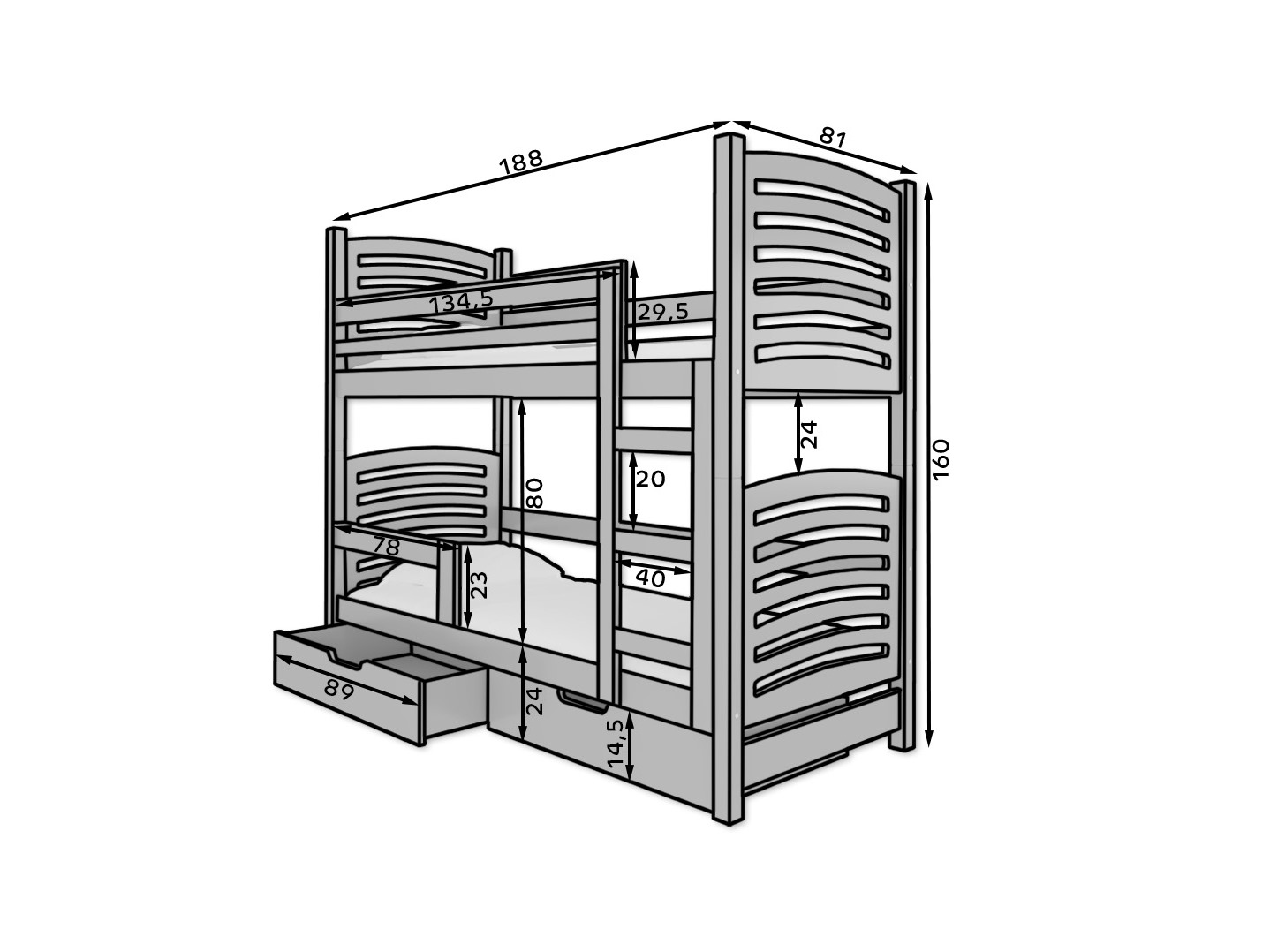 Emeletes gyerekágy 180x75 cm Oxana (ágyráccsal és matraccal) (szürke)