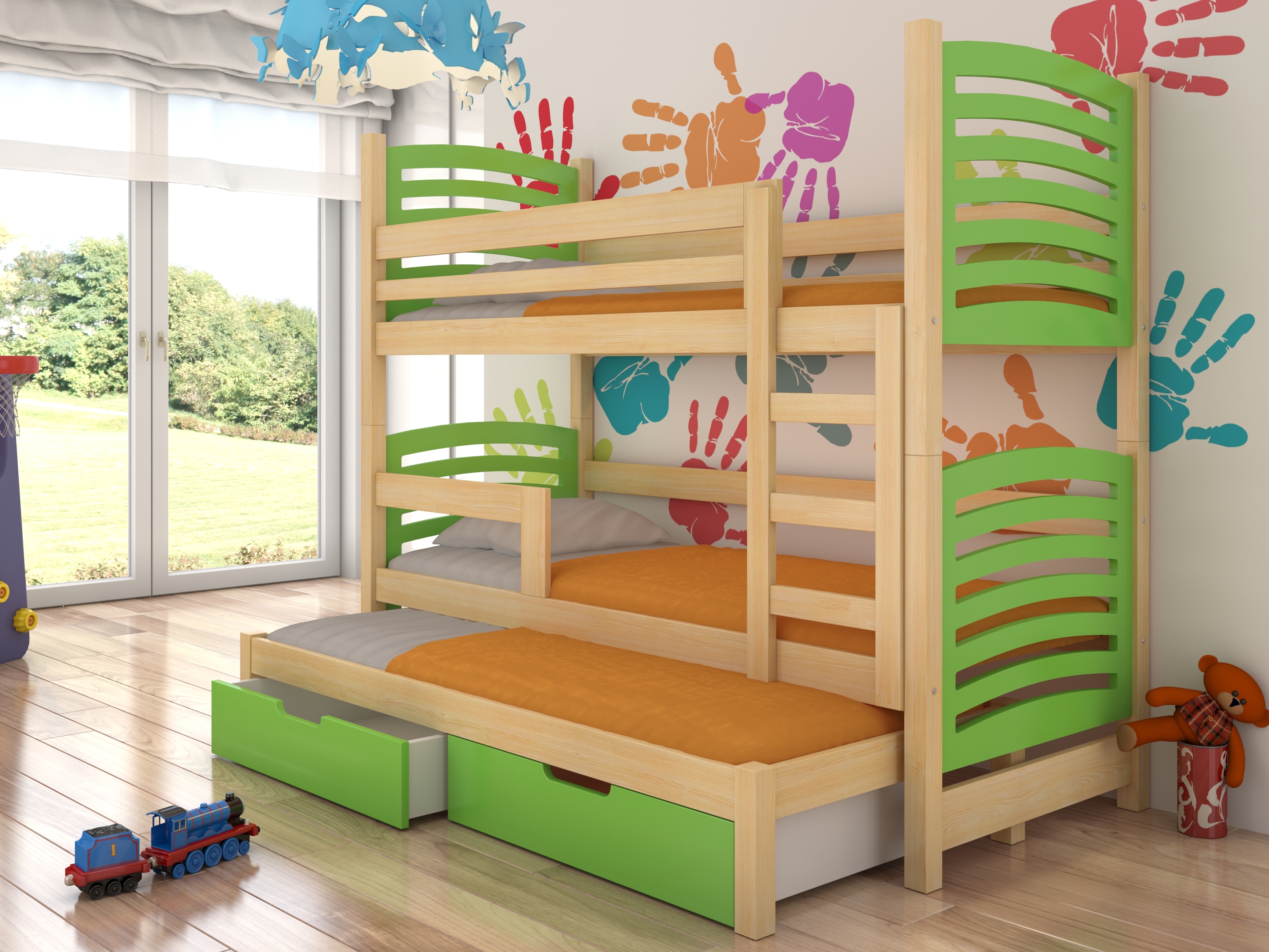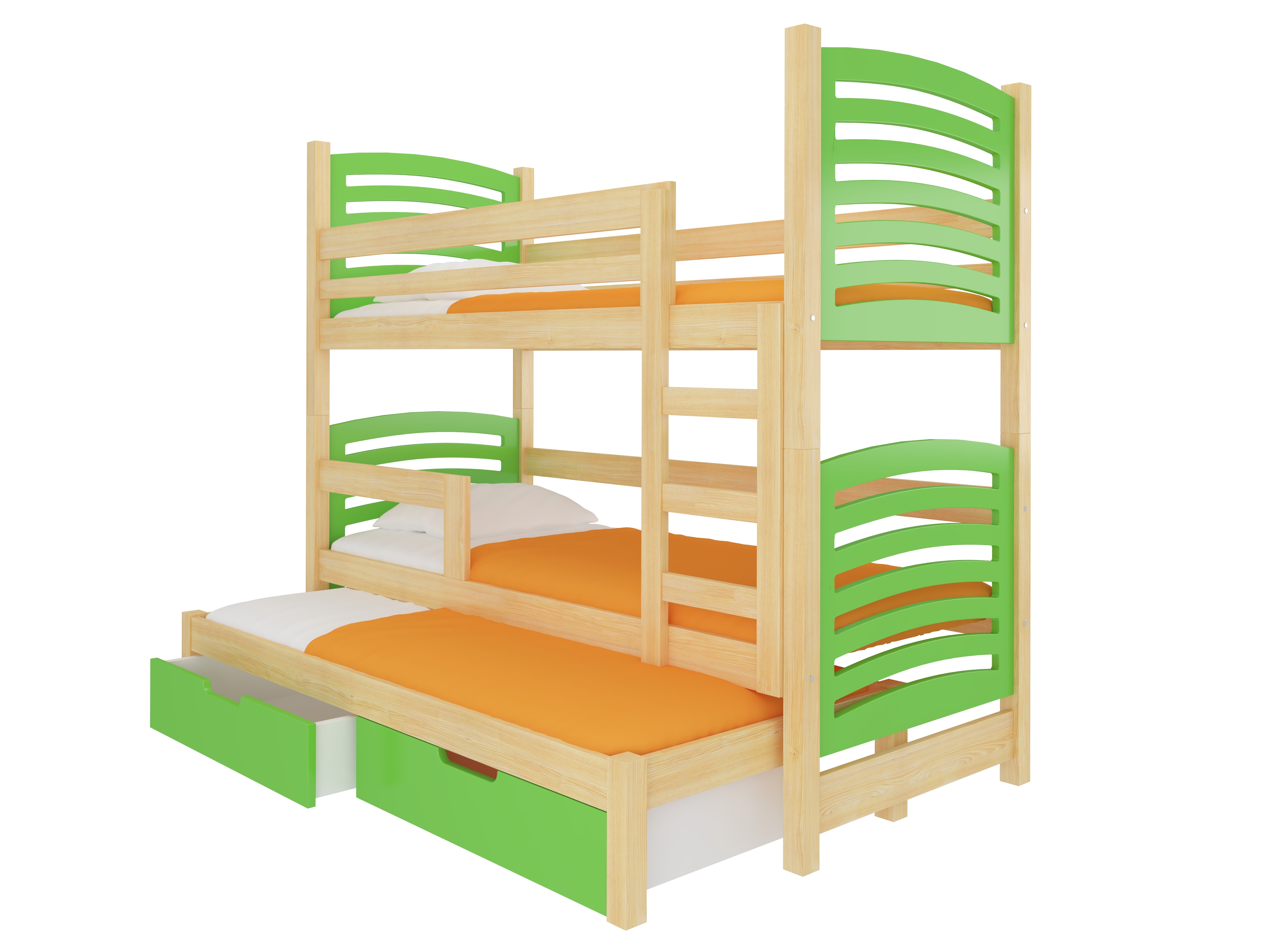 Emeletes gyerekágy 180x75 cm Stanislava (ágyráccsal és matraccal) (fenyő + zöld)