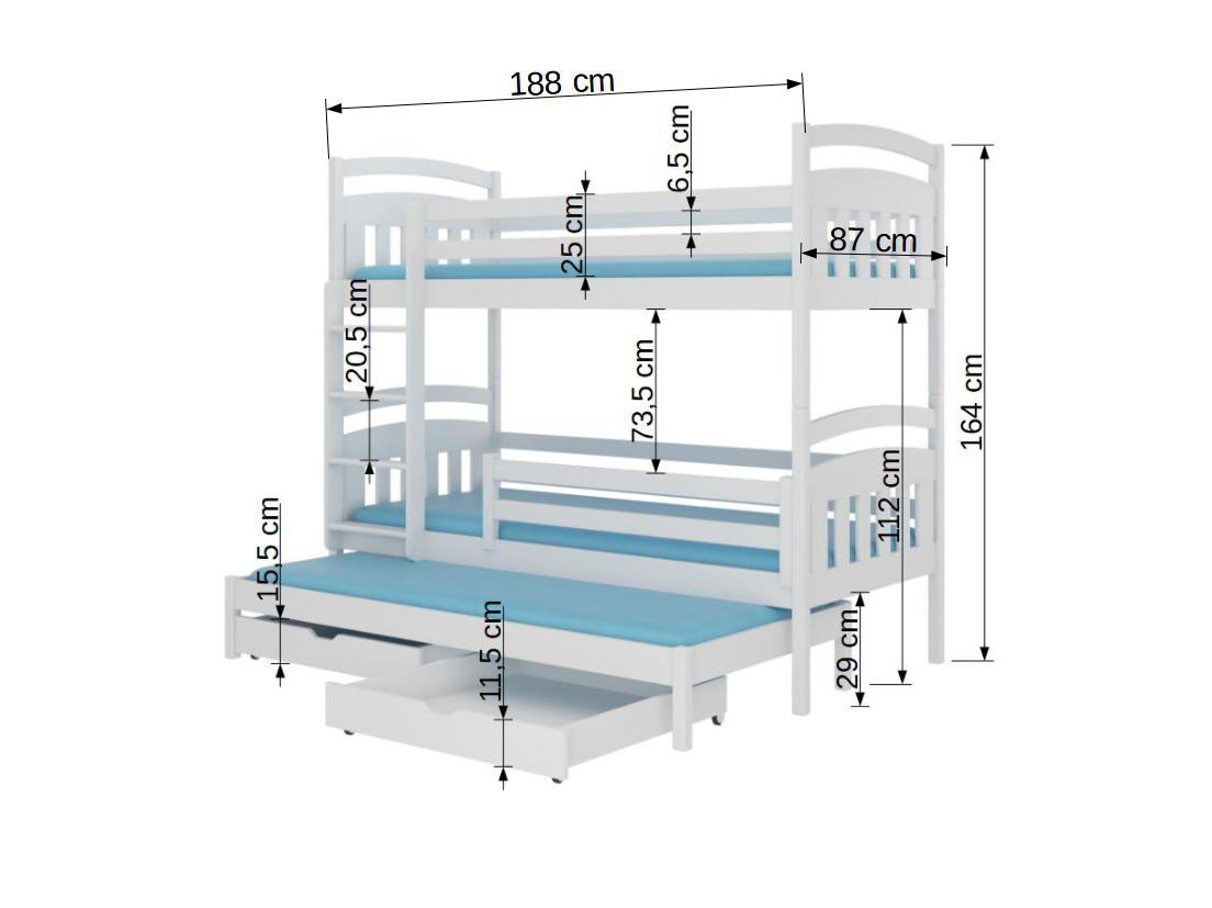 Emeletes gyerekágy 180x80 cm Aladar (ágyráccsal és matraccal) (fehér)