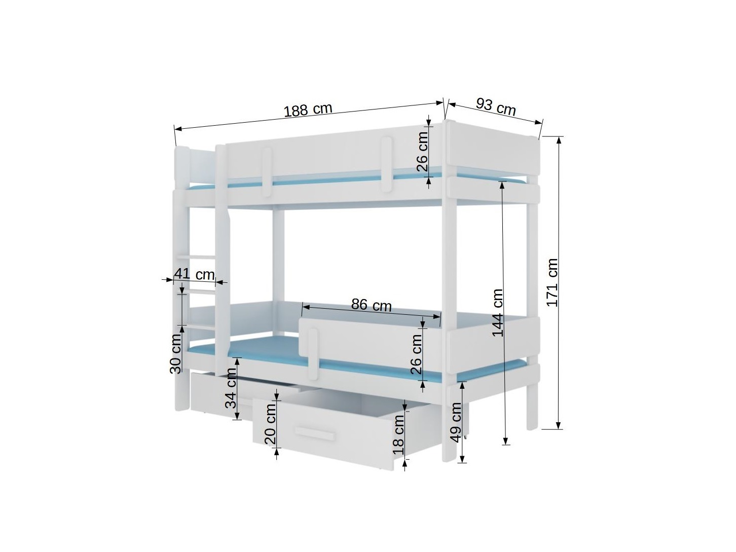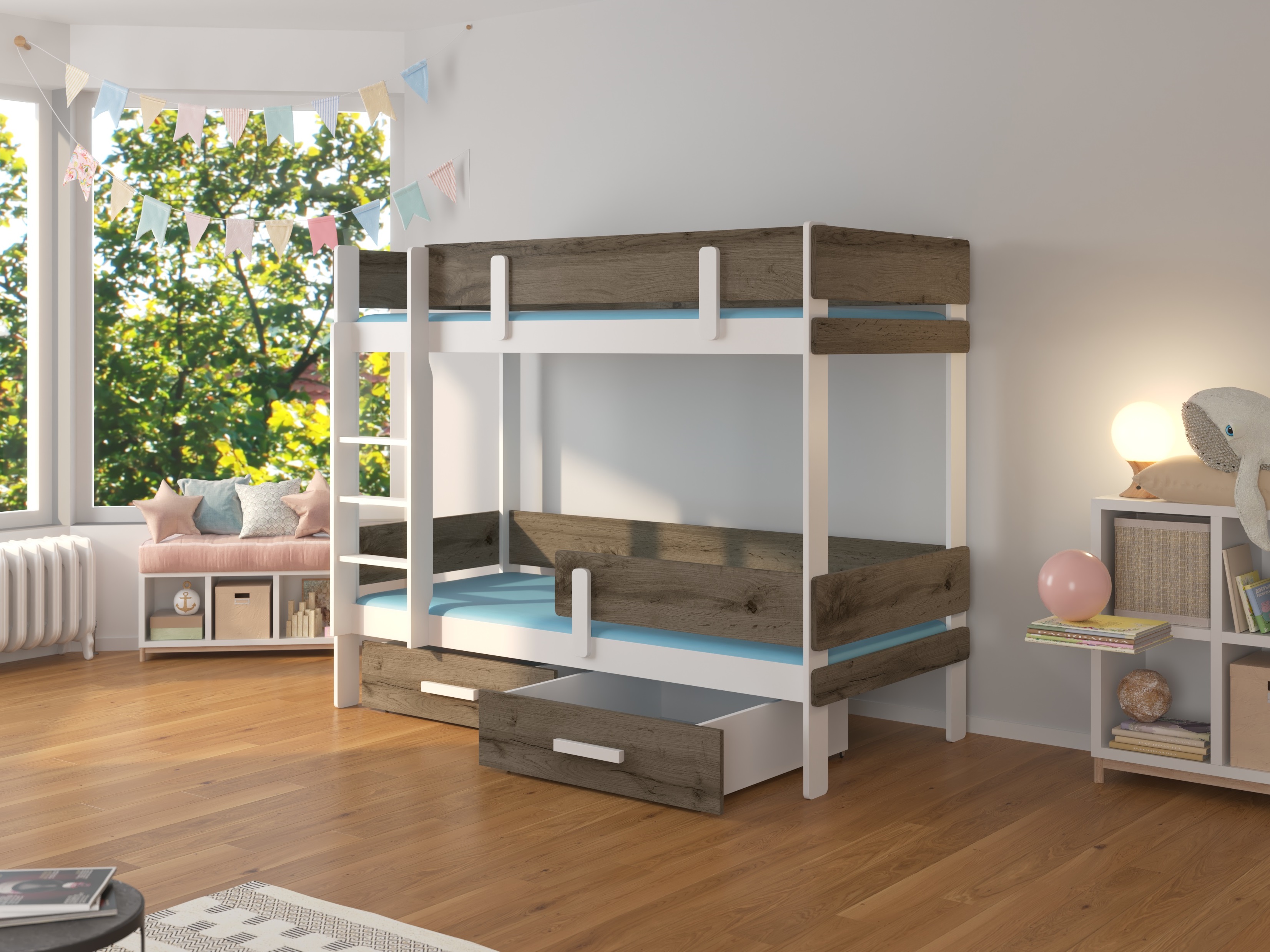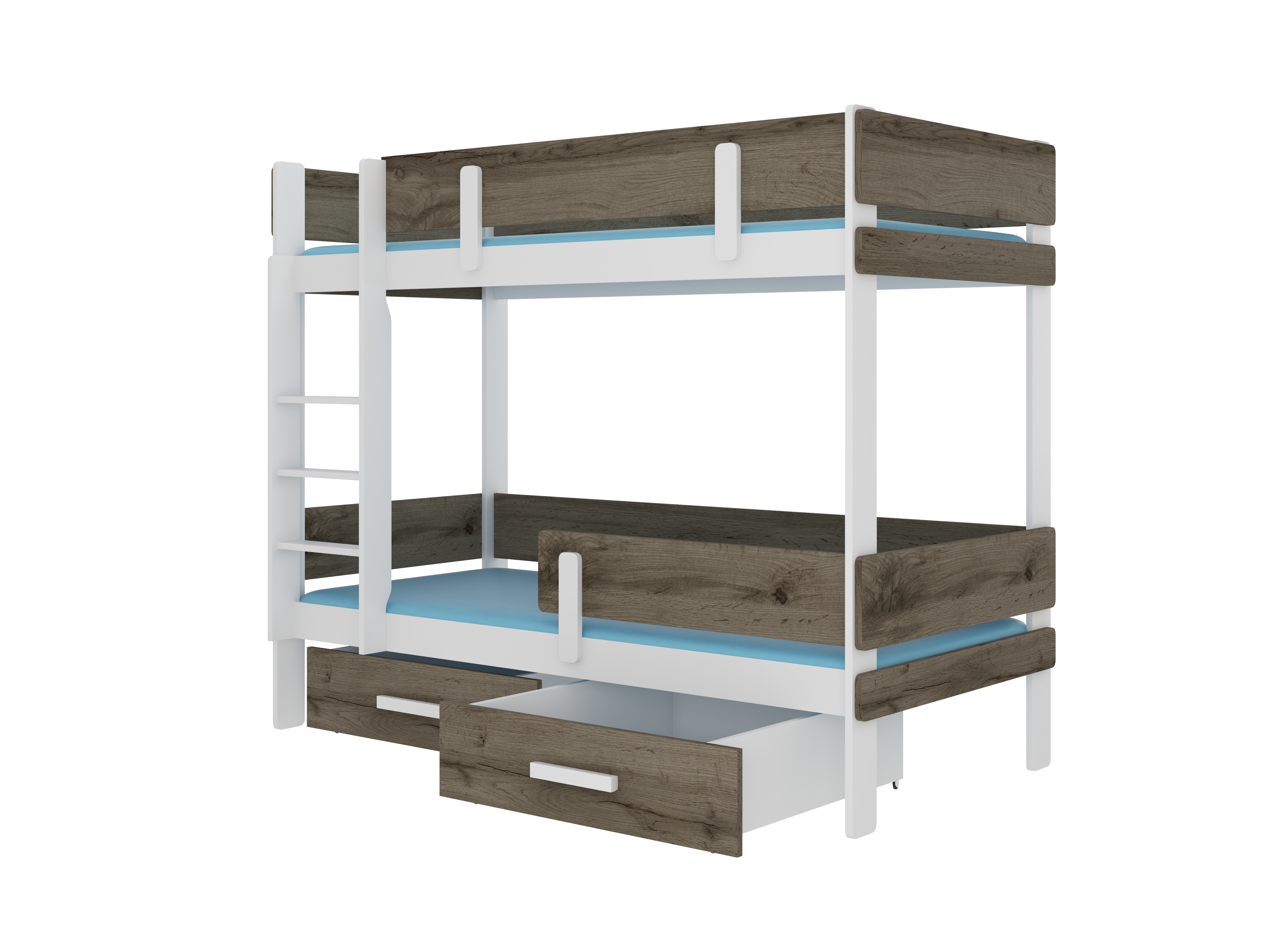 Emeletes gyerekágy 180x80 cm Ellen (ágyráccsal) (fehér + szürke tölgy)