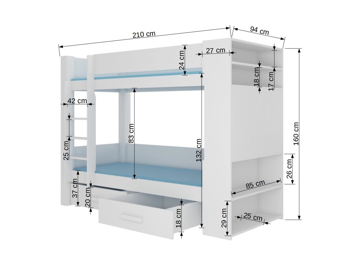 Emeletes gyerekágy 180x80 cm Gabriela (ágyráccsal és matraccal) (fehér)