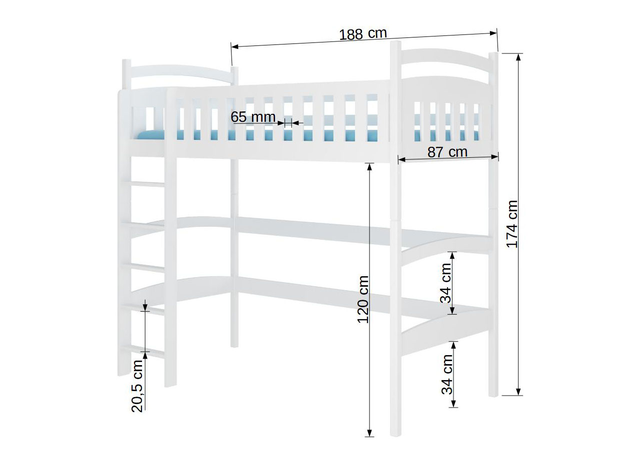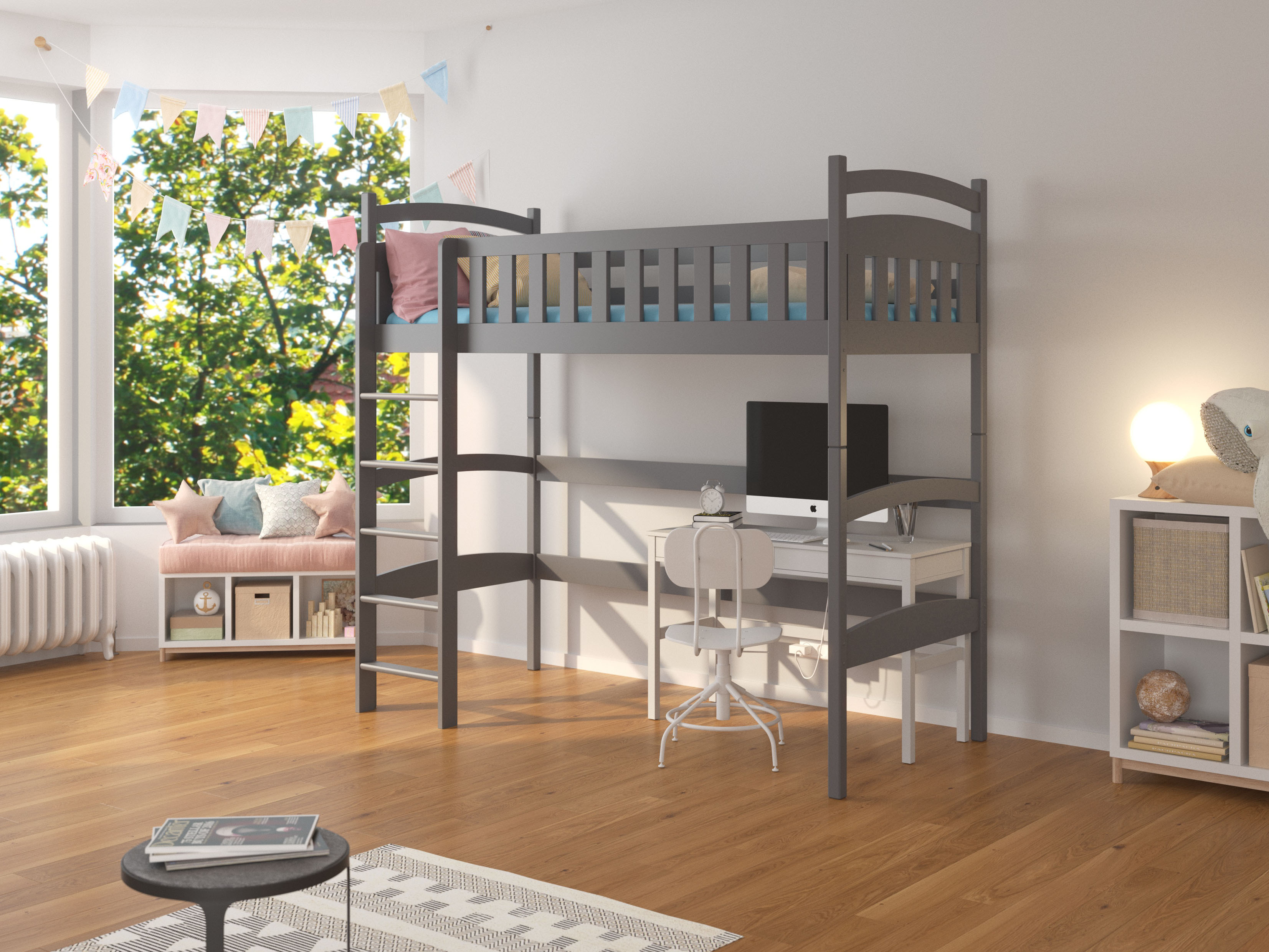 Emeletes gyerekágy 180x80 cm Milo (ágyráccsal és matraccal) (grafit)