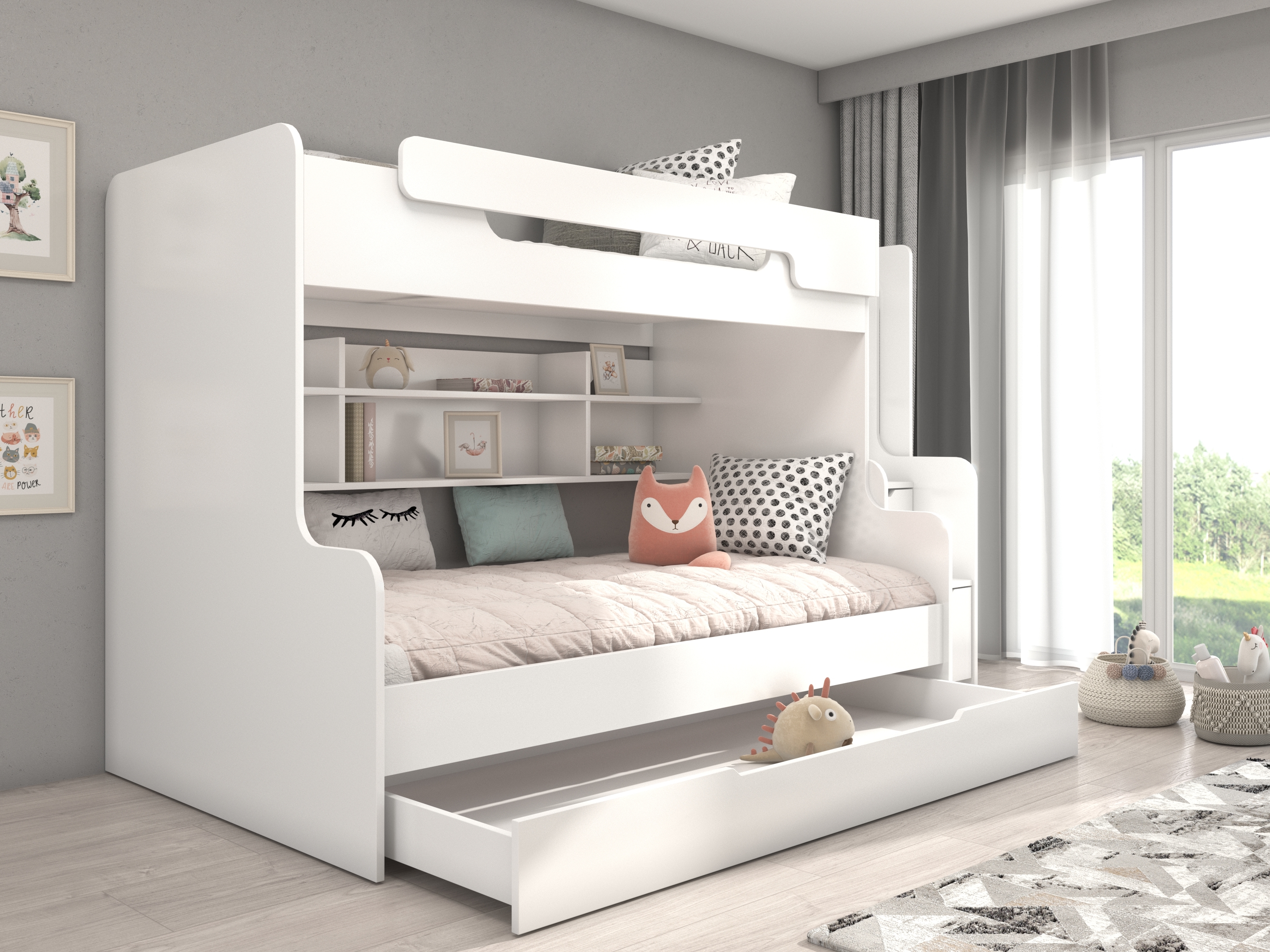 Emeletes gyerekágy 200x90 cm, 200x120 cm Homer (ágyráccsal és matraccal) (fehér)