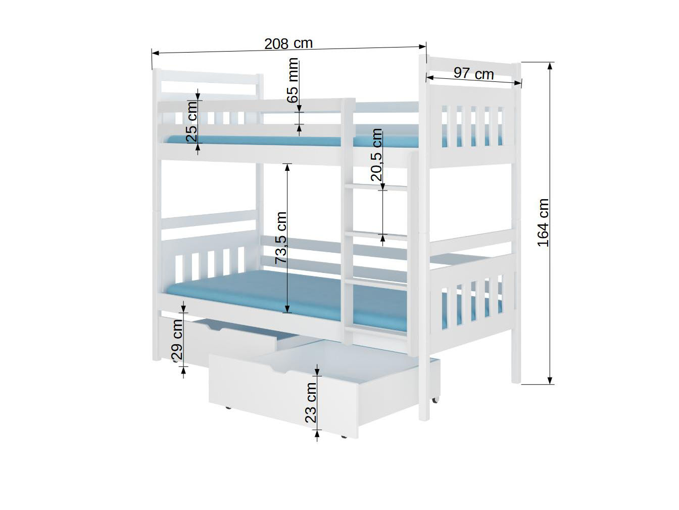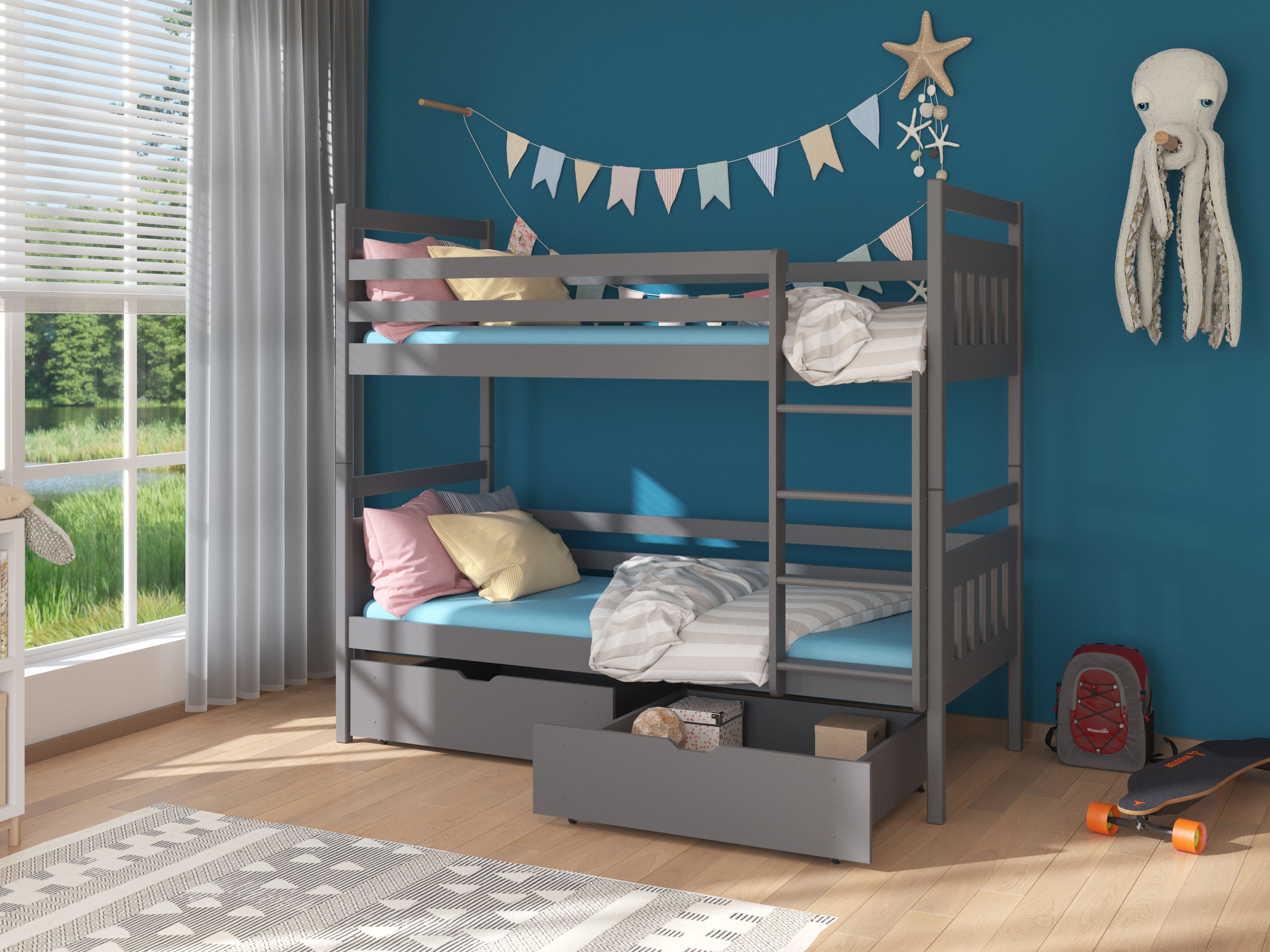 Emeletes gyerekágy 200x90 cm Adriana (ágyráccsal) (grafit)