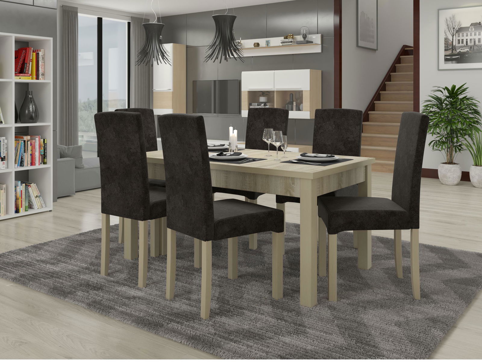 A Raviel 1 étkező sonoma tölgy és fekete kombinációjában tökéletes hely a családdal és barátokkal töltött időre. Hat kényelmes, Kronos 27132 árnyalatú kárpitozással ellátott Raviel56 szék és a Raviel56 étkezőasztal harmonikus és elegáns teret teremt, amely modern dizájnjával és kiváló minőségű kidolgozásával lenyűgözi a vendégeket. Ez az étkezőgarnitúra ideális azok számára, akik a funkcionalitás és a stílus ötvözetét keresik otthonukban.