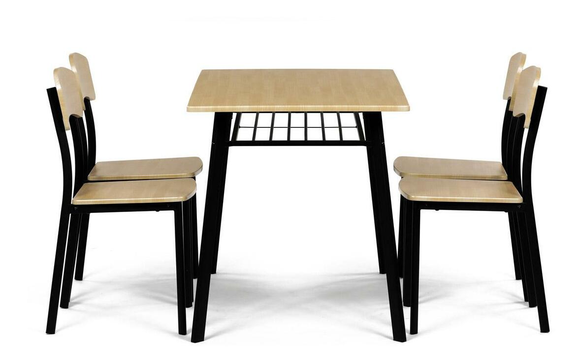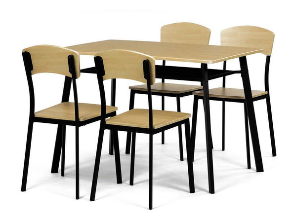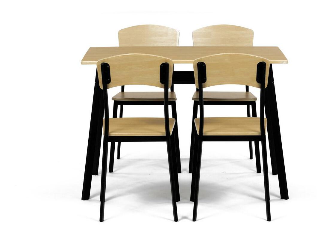 MutasdA négy személyes étkezőgarnitúra a praktikus dizájnt ötvözi a modern ipari stílussal. A tölgyfa díszítésű, téglalap alakú asztal és a négy fekete fém lábú szék elegáns kontrasztot alkot a belső térrel. Az MDF asztallapok erősek és tartósak, biztosítva a bútorok hosszú élettartamát. Méreteinek köszönhetően ez a garnitúra ideális választás családi étkezésekhez kis és közepes méretű étkezőkben. Stílusos és egyszerű megjelenése könnyedén illeszkedik bármilyen modern enteriőrbe.