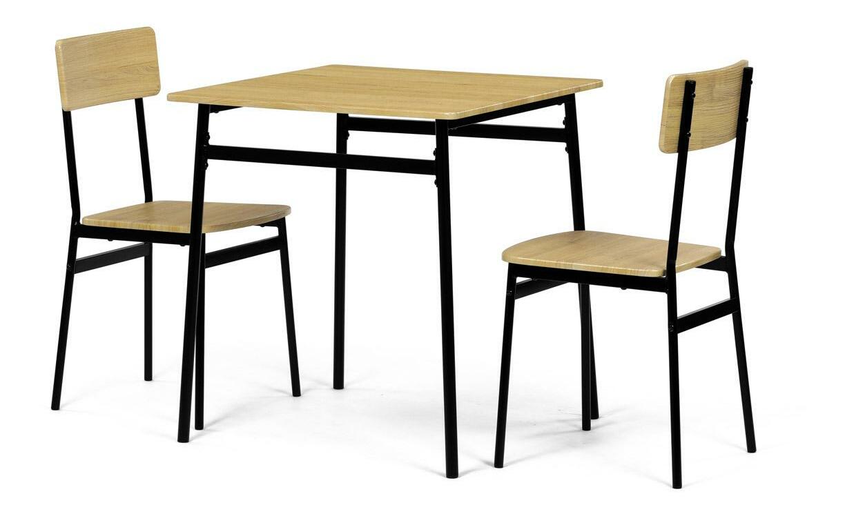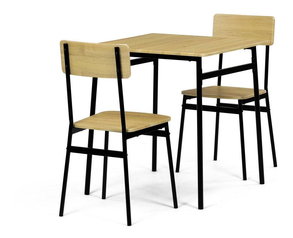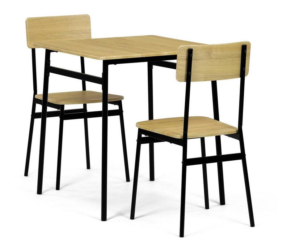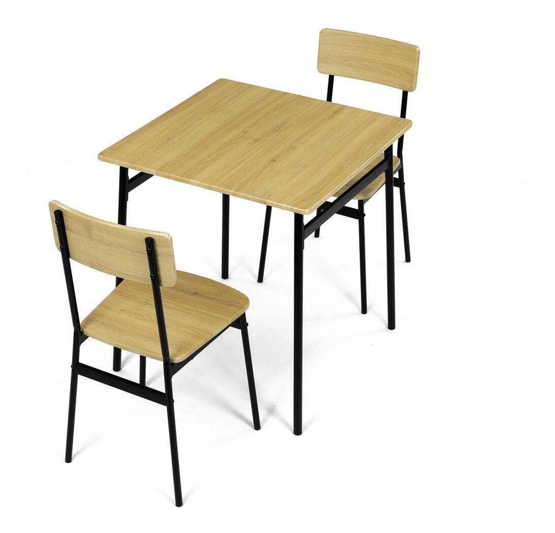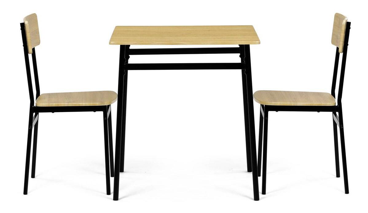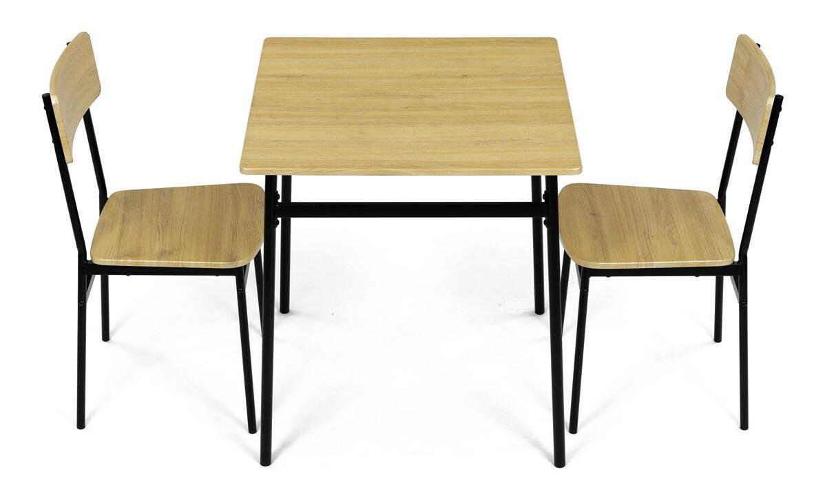 MutasdEz az étkezőgarnitúra ideális választás kisebb helyiségekbe. A szett egy négyzet alakú asztalt és két széket tartalmaz, amelyek ipari formatervezésükkel tökéletesen illeszkednek a modern enteriőrökbe. Az asztallap és az ülőkék tartós MDF-ből készültek, vadtölgy díszítéssel. A fekete fém lábak stabilitást és modern kontrasztot kölcsönöznek a szettnek. Ez a szett ideális két személy számára, és különösen alkalmas kisebb étkezőkbe vagy konyhákba. Az összeszerelés egyszerű és gyors, ideális megoldás a modern életstílushoz.