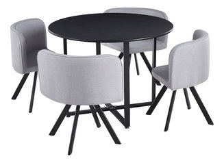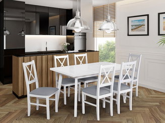 - Helyek száma: Magának a készletnek a méretei a háztartásban élők számán alapulnak. Ha ketten vannak, és egy kétüléses étkezőgarnitúra mellett dönt, nehéz lesz helyet találni a harmadiknak. Egy négyszemélyes szükségtelenül nagynak tűnhet. Itt azonban lehet játszani a formákkal – egy kerek asztal több helyet kínál, és nem foglal sokkal több helyet. Élvezheti a barátok vagy a család esetleges látogatását is. Nagyobb családok számára 5 vagy 6 személyes szett is megtalálható kínálatunkba.