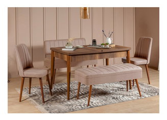 A széthúzható étkezőgarnitúrák az étkezőasztalon és a székeken kívül más, azonos kialakítású bútorokat is tartalmaznak. Ha egységes stílusban szeretné berendezni étkezőjét, a bővített étkezőgarnitúrák nagyban leegyszerűsítik a munkáját. Belátása szerint hozzáillő komódot, vitrint, polcot vagy tükröt szerelhet a szobába.