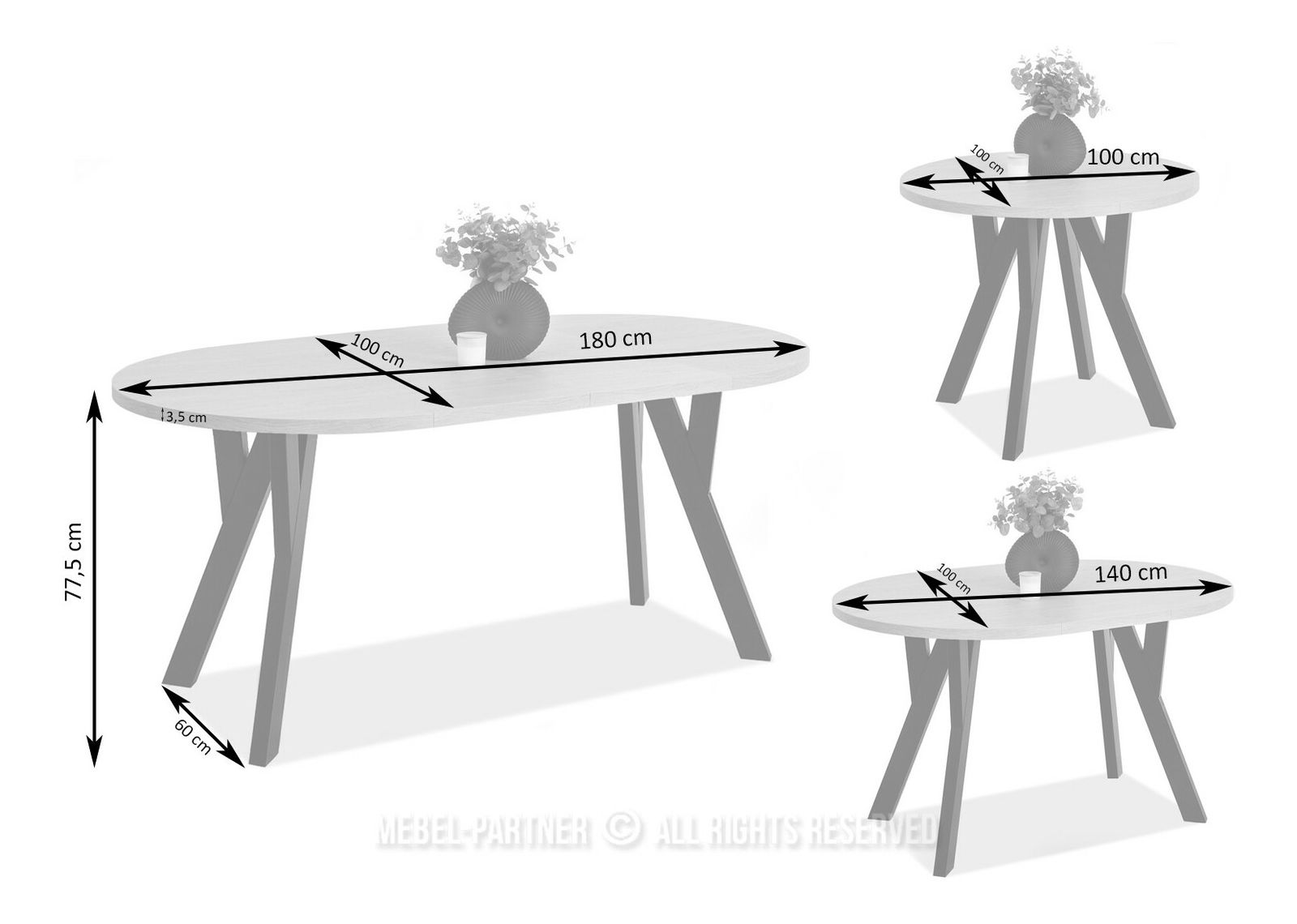 4 lábú talp, 6 személyes, széthúzható, ovális felső