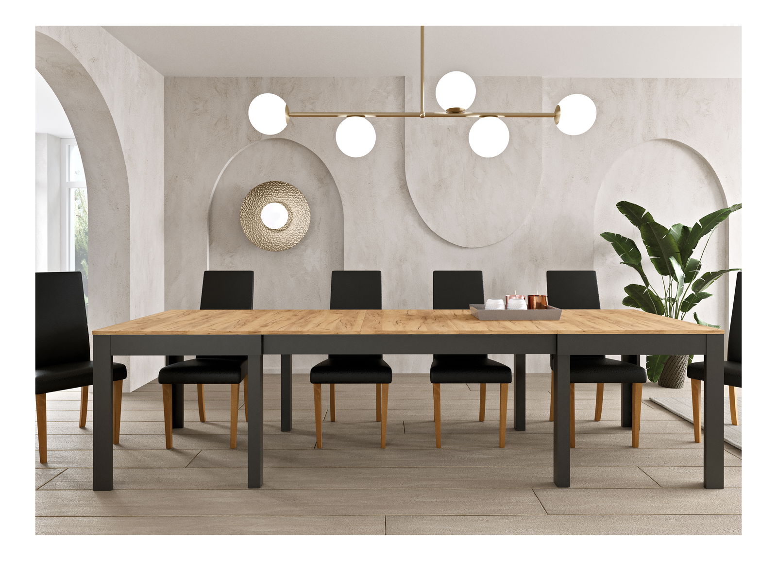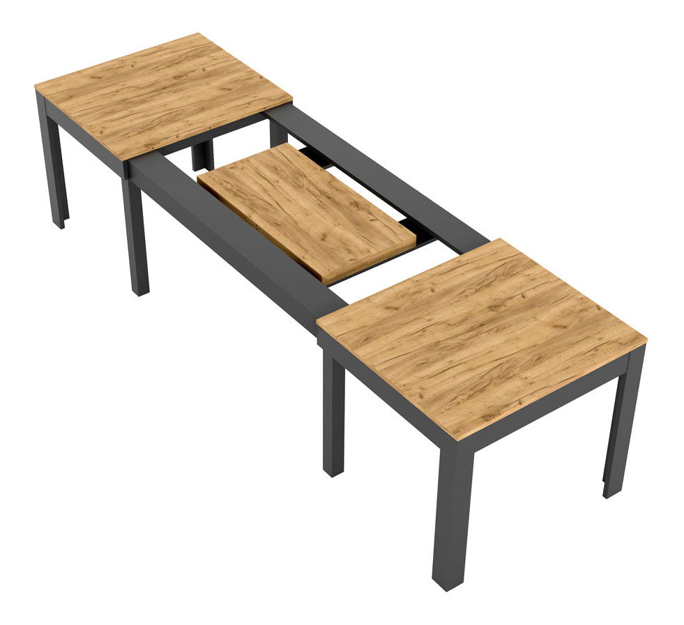 Az asztal az eredeti 160 cm-es hosszról akár 300 cm-re bővíthető a szállítás részét képező bővítődeszkák segítségével