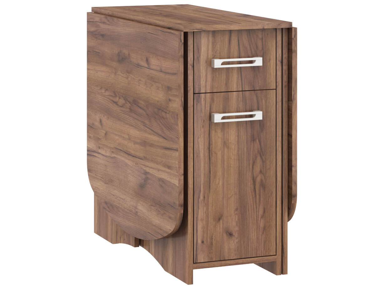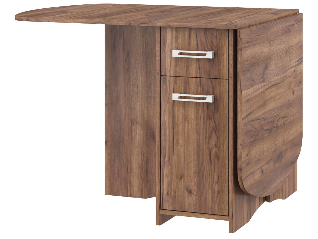 Összecsukható, így nem foglal sok helyet, szükség esetén kisebb-nagyobb asztallá is összehajtható, nagyon kellemesen néz ki. Két fiók és egy szekrény is előnyt jelent. Elégedettség.