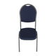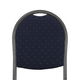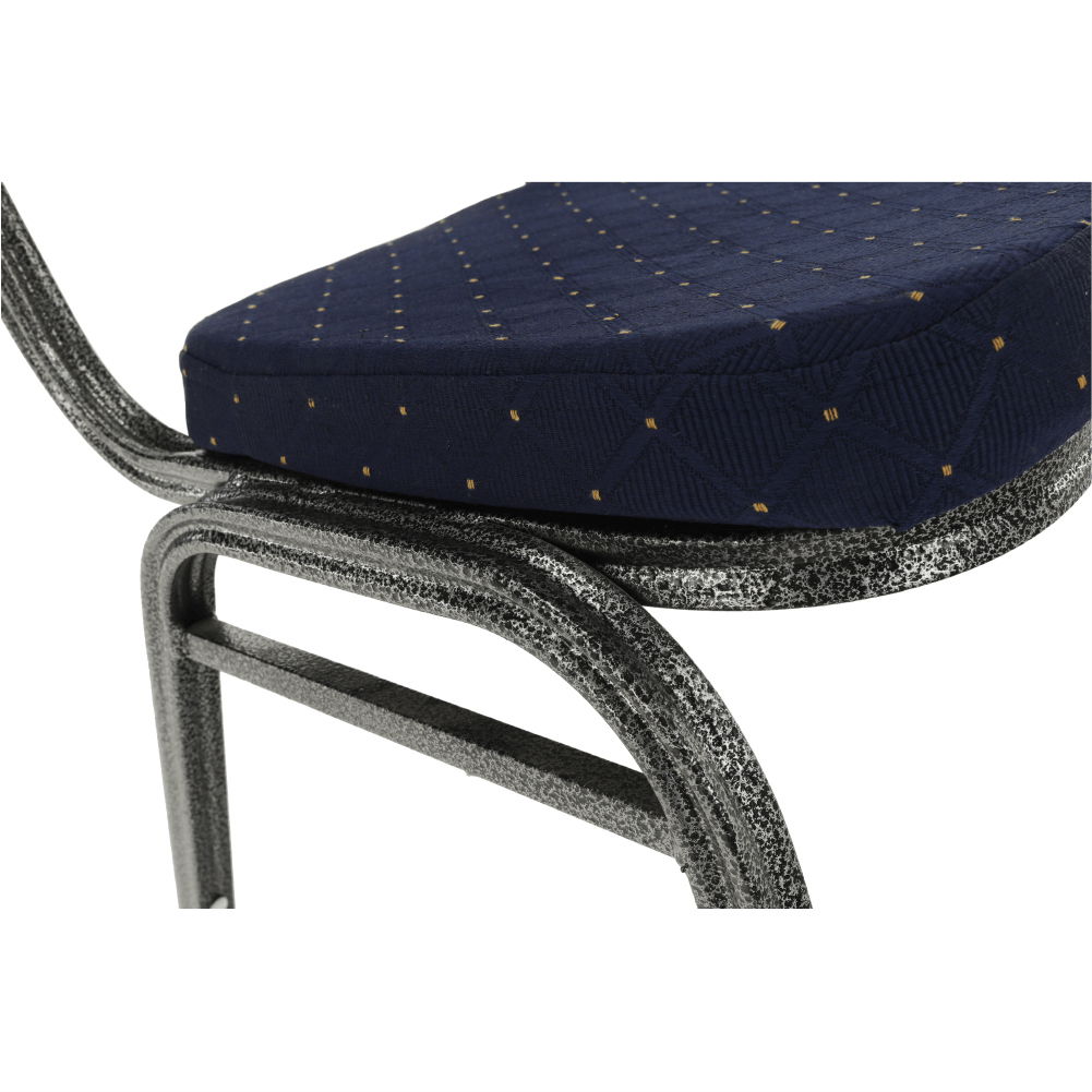 A Üvegvis szék szép és elegáns kialakításával tűnik ki. Szürke kerettel és kék mintás borítóval rendelkezik. a szék egymásra rakható és helyet takarít meg.