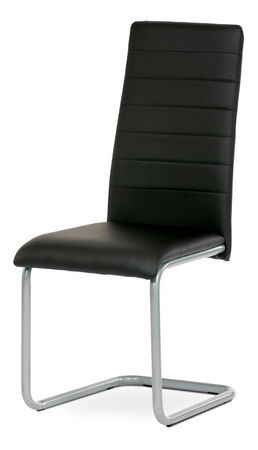 MutasdAz étkezőszék remekül illik mind lakó-, mind irodai terekbe, és olyan kényelmet fogsz tapasztalni, mint még soha. Az elegáns modern dizájn fekete ekológikus bőr bevonattal bármilyen asztalhoz vagy enteriőrhöz illik. A sima ekológikus bőr kárpit luxushatást kölcsönöz a tartósság és a könnyű karbantartás feláldozása nélkül. Ezáltal a szék környezetbarát választás is. A szürke fém lábak elegáns kontrasztot alkotnak a kárpit fekete árnyalataival. A precízen megmunkált lábak nemcsak a hosszú távú stabilitást garantálják, hanem hozzájárulnak a modern bútordarab stílusos megjelenéséhez is. Az étkezőszéket innovatív hintázó talpa különbözteti meg a többitől. Ez az elem praktikumot és fokozott kényelmet kínál, lehetővé téve, hogy kényelmesen ringasd magad előre-hátra, miközben elmerülsz egy mély beszélgetésben vacsora közben.