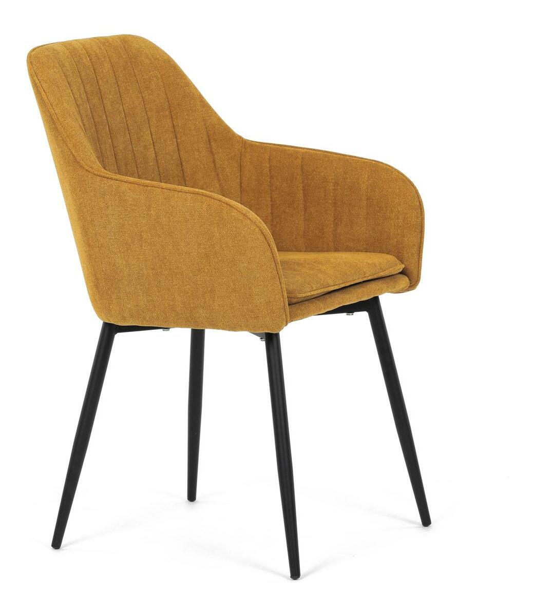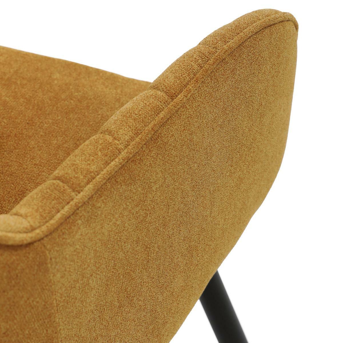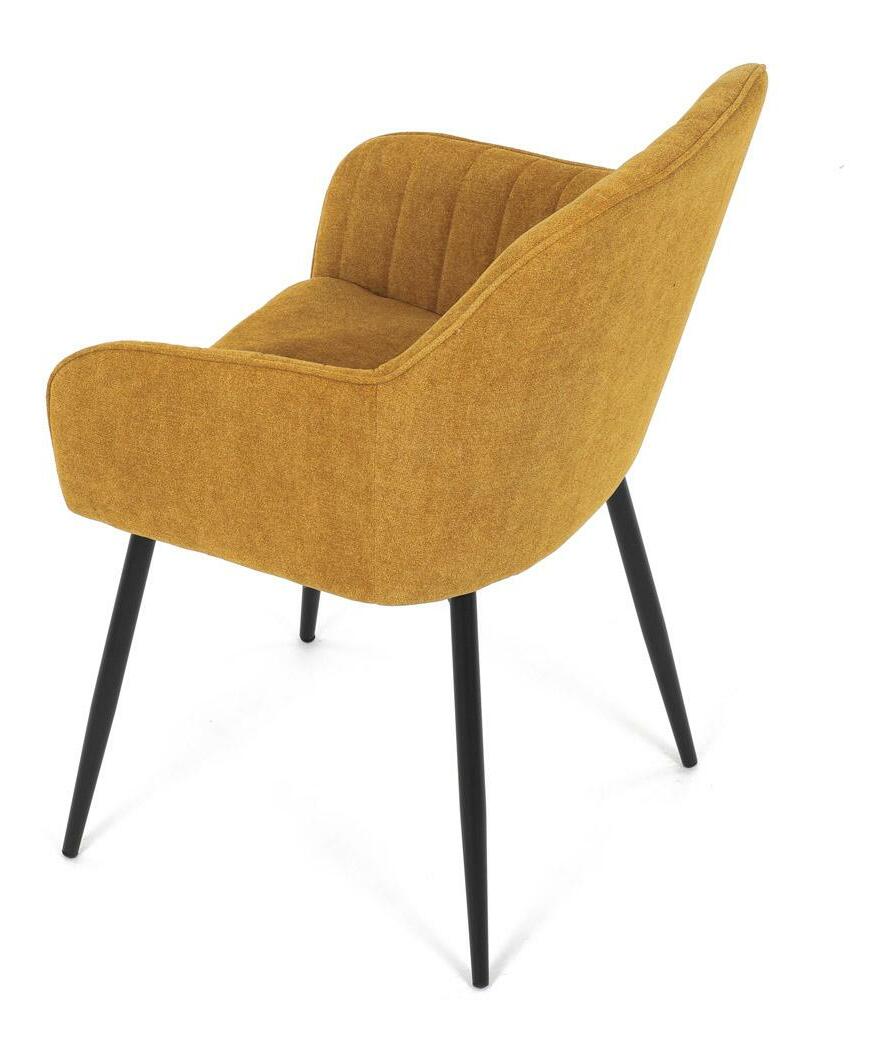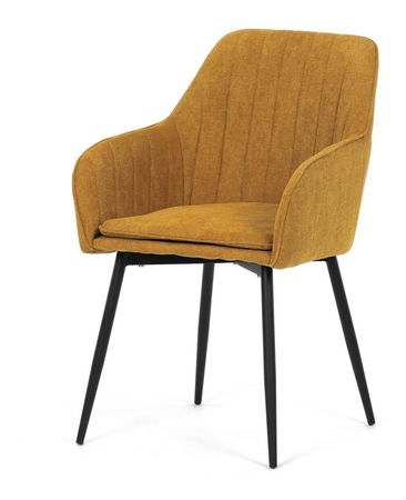 MutasdA stílusos étkezőszék modern ipari formatervezésével lenyűgöző, amely tökéletesen illeszkedik bármilyen belső térbe. Sima, sárga szövettel kárpitozva, amely nemcsak tartós, de kellemes tapintású is. Kényelmes karfák és puha habpárnázat biztosítja az ülés kényelmét. A masszív fekete fém szerkezet lekerekített profilú lábakkal stabilitást és elegáns megjelenést kölcsönöz. Ez az étkezőszék ideális választás modern étkezőkbe, ahol a kényelem az esztétikával és a tartóssággal párosul.