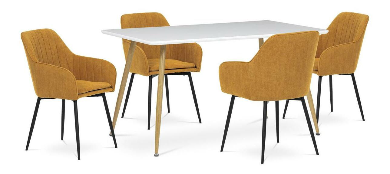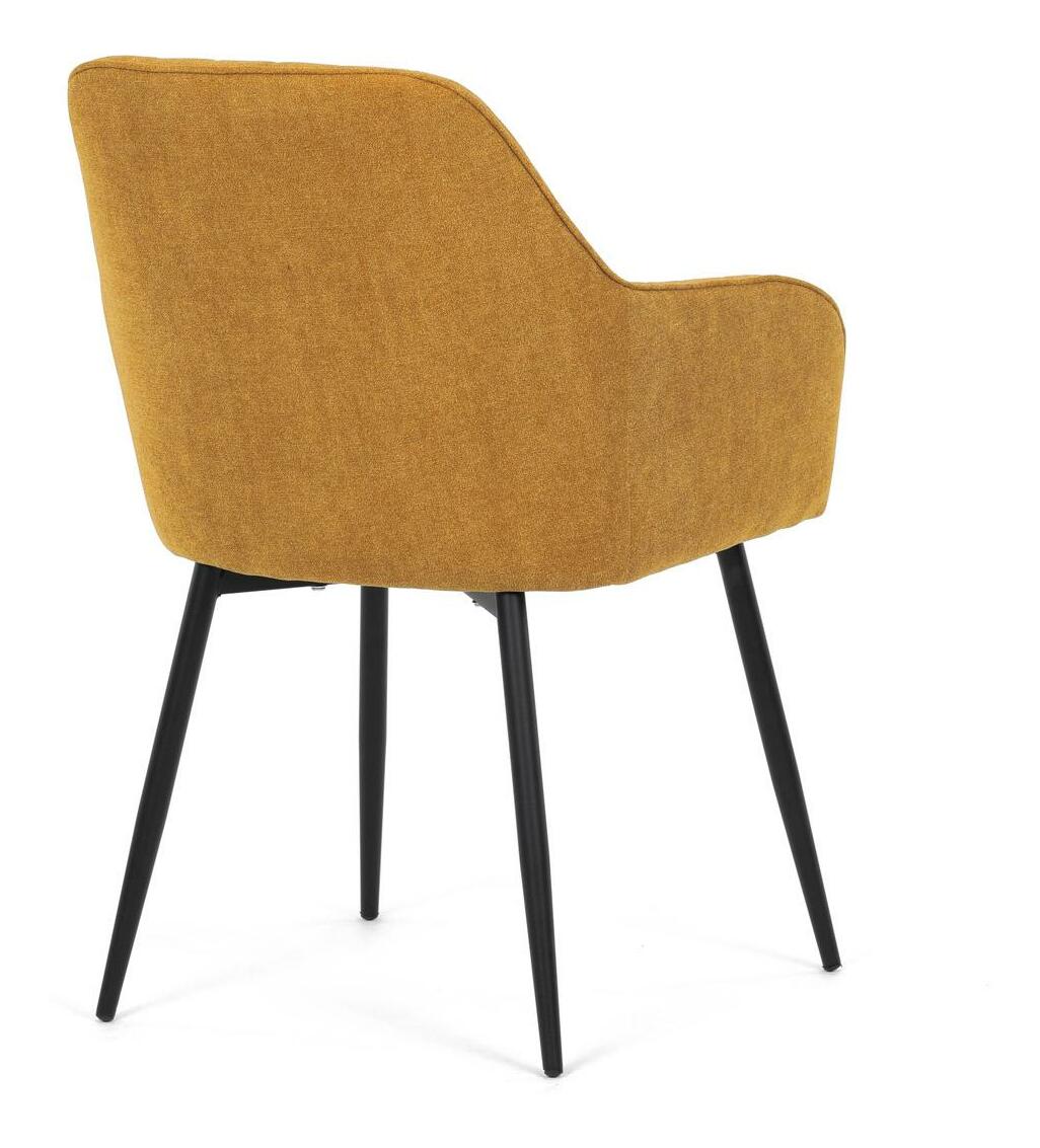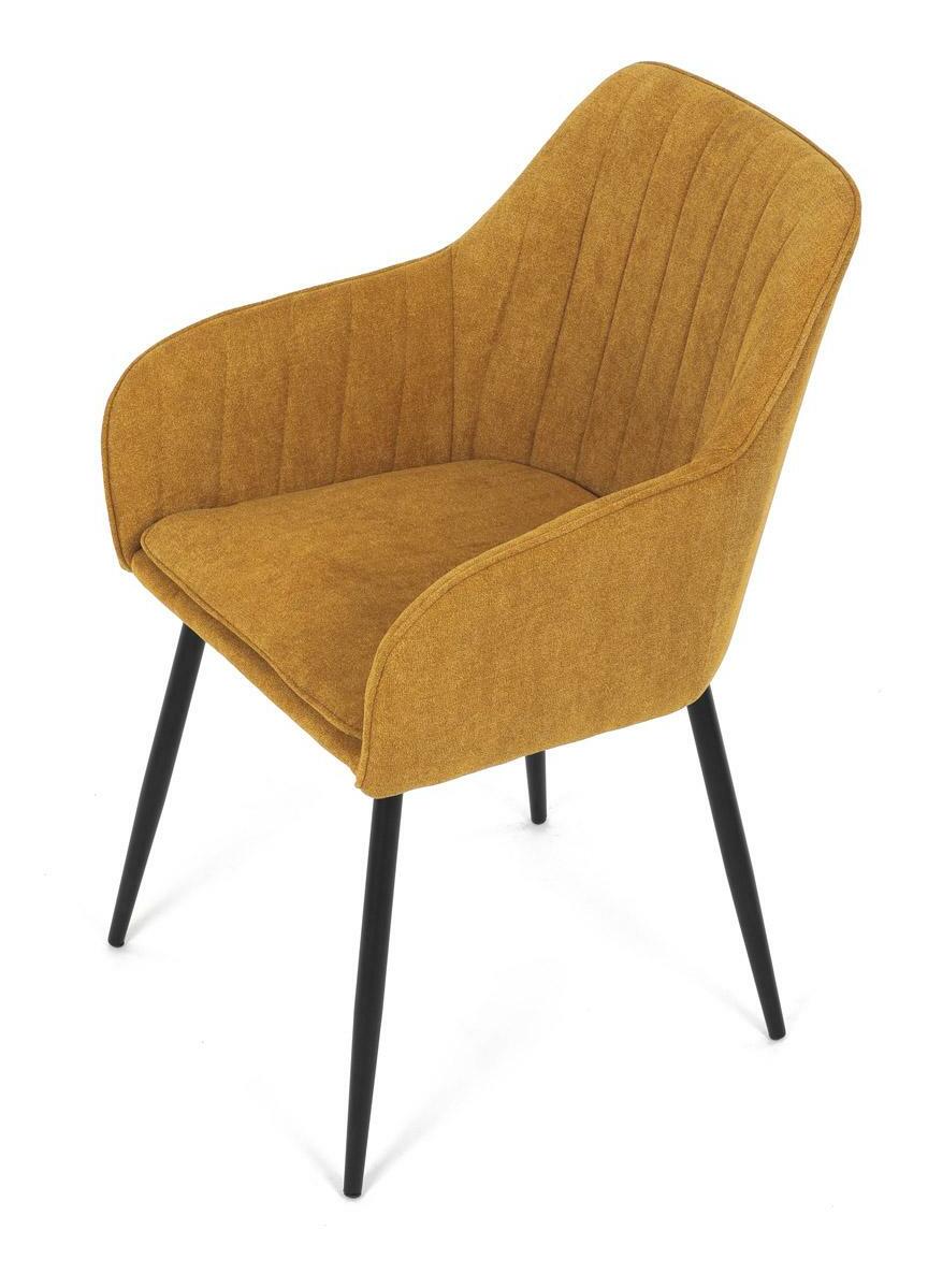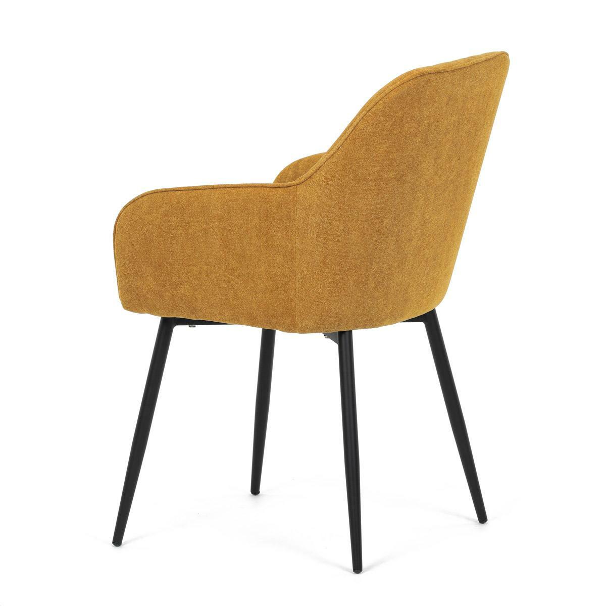 MutasdA stílusos étkezőszék modern ipari formatervezésével lenyűgöző, amely tökéletesen illeszkedik bármilyen belső térbe. Sima, sárga szövettel kárpitozva, amely nemcsak tartós, de kellemes tapintású is. Kényelmes karfák és puha habpárnázat biztosítja az ülés kényelmét. A masszív fekete fém szerkezet lekerekített profilú lábakkal stabilitást és elegáns megjelenést kölcsönöz. Ez az étkezőszék ideális választás modern étkezőkbe, ahol a kényelem az esztétikával és a tartóssággal párosul.