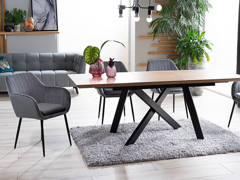 Széthúzható étkezőasztal 120 AMERO (artisan tölgy + fekete) (4-6 fő részére)